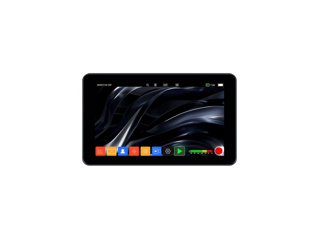 Afișaj și intrări: Este echipat cu un ecran tactil de 5,5" cu o rezoluție de 1920 x 1080, o intrare HDMI 2.0 pentru conectarea diferitelor camere și o mufă pentru căști de 3,5 mm pentru monitorizarea sunetului încorporat.