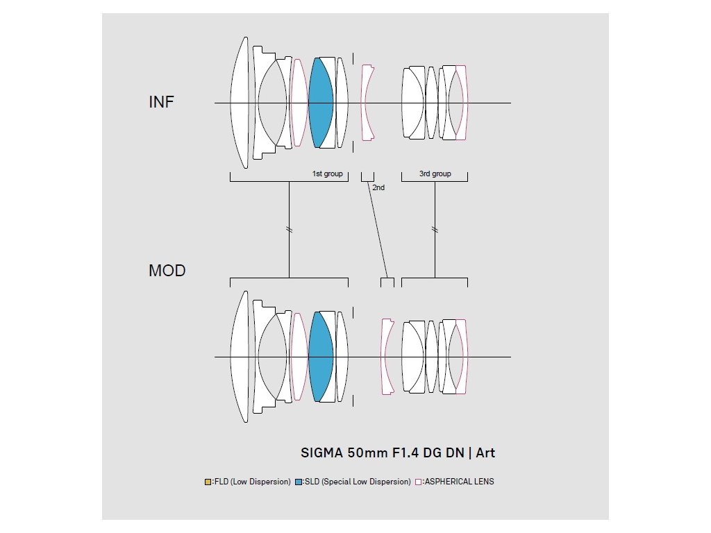 Succesorul popularului obiectiv DSLR fix SIGMA 50mm F1.4 DG HSM Art. Lentila a primit un design modern și etanșare completă împotriva prafului și stropirii cu apă. Designul optic îmbunătățit cu 14 elemente în 11 grupuri (1x SLD, 3x ASF) arată o îmbunătățire extremă a performanței optice în comparație cu predecesorul său, inclusiv corectarea eficientă a comei sagitale pentru reproducerea surselor punctuale. Focalizarea automată precisă și receptivă este asigurată de noul motor silențios HLA (Actuator linear cu răspuns ridicat), care apare pentru prima dată în linia Art. Frumosul bokeh cremos este ajutat de o deschidere cu 11 lamele, iar strălucirea este eliminată eficient de stratul antireflex (acoperire super multi-strat) completat cu un strat antistatic WR (Water-Repelent) împotriva grăsimilor și umezelii. Greutatea totală a obiectivului a fost redusă la 660 g pentru montura Sony E și 670 g pentru montura Sigma L. Parametri tehnici: - construcția lentilelor: 14 membri din 11 grupuri (1 SLD, 3 ASF)- unghi de vizualizare: 46,8 ° (FF), 31,7 ° (APSC)