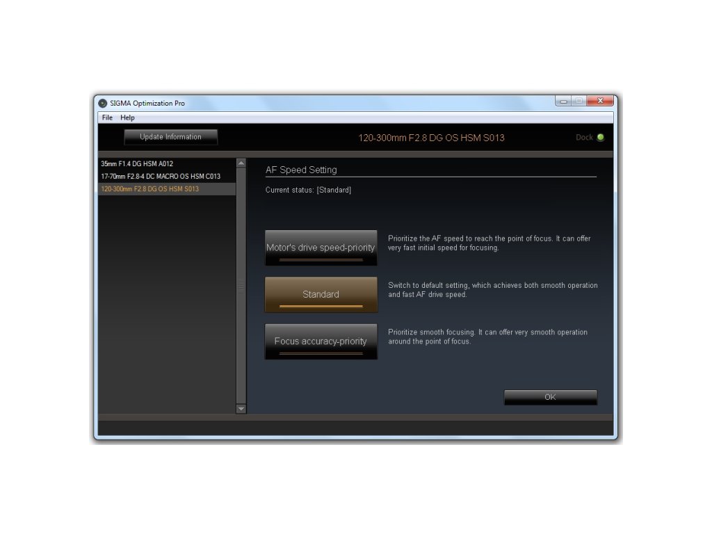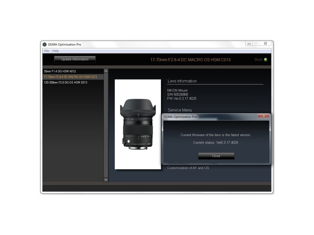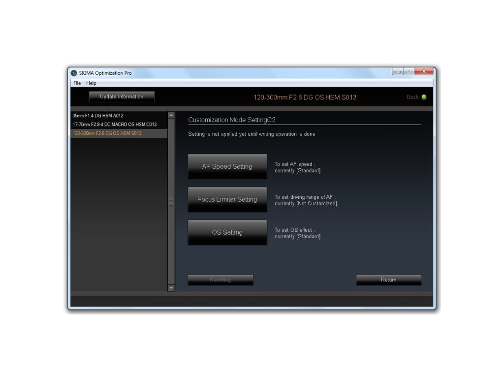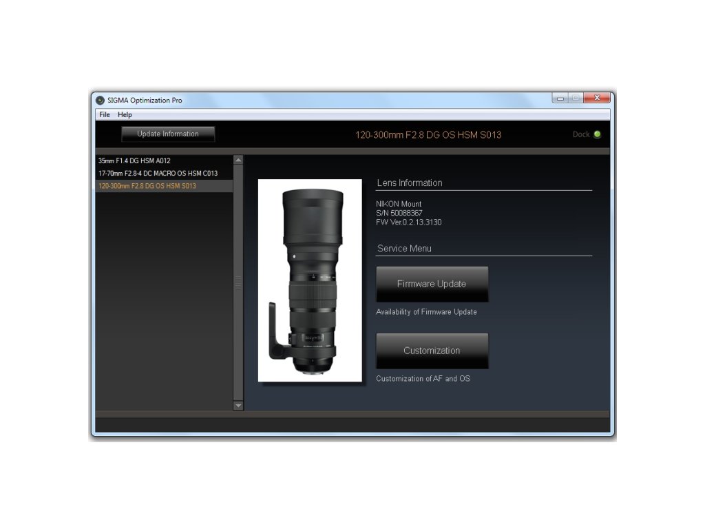 Dock-ul USB este destinat obiectivelor noii serii SGV SIGMA Art, Sports, Contemporary. Este produs în mai multe versiuni, întotdeauna cu baionetă specifică. Dispozitivul permite utilizatorilor să actualizeze firmware-ul obiectivului foarte simplu și acasă, să ajusteze nivelul de claritate (FF/BF) pentru DSLR SLR, să seteze modul de focalizare MO pentru obiectivele mai vechi, să seteze butoane programabile pentru modele mai noi și să programeze modurile utilizator împreună pentru sport și teleobiective contemporane cu parametri suplimentari ai obiectivului, datorită cărora puteți adapta obiectivul la nevoile dumneavoastră specifice.Modurile C1 și C2 oferă: