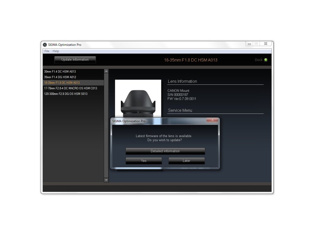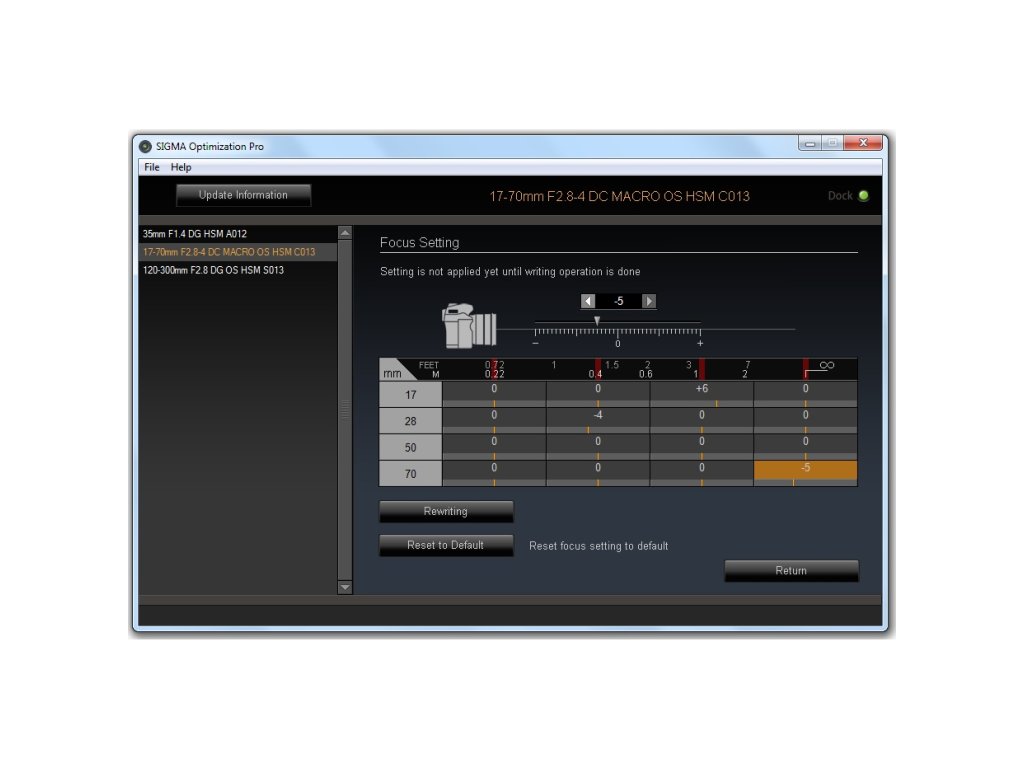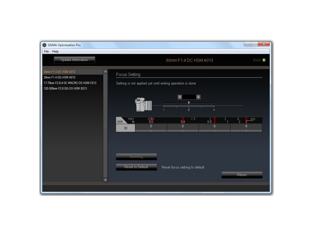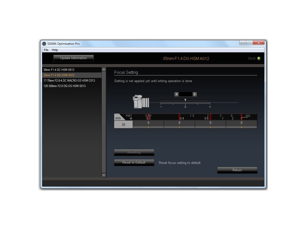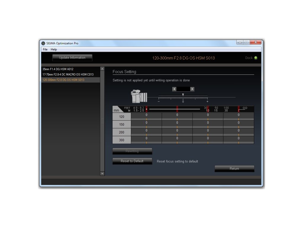 Dock-ul USB este destinat obiectivelor noii serii SGV SIGMA Art, Sports, Contemporary. Este produs în mai multe versiuni, întotdeauna cu baionetă specifică. Dispozitivul permite utilizatorilor să actualizeze firmware-ul obiectivului foarte simplu și acasă, să ajusteze nivelul de claritate (FF/BF) pentru DSLR SLR, să seteze modul de focalizare MO pentru obiectivele mai vechi, să seteze butoane programabile pentru modele mai noi și să programeze modurile utilizator împreună pentru sport și teleobiective contemporane cu parametri suplimentari ai obiectivului, datorită cărora puteți adapta obiectivul la nevoile dumneavoastră specifice.Modurile C1 și C2 oferă: