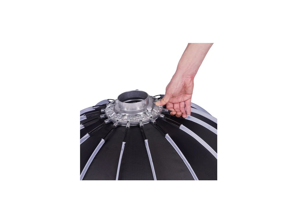 - Softbox-ul SIRUI este echipat cu o montură compatibilă cu Bowens și, prin urmare, este potrivit pentru utilizarea cu multe blițuri și lumini continue care au o conexiune compatibilă Bowens S-Type.