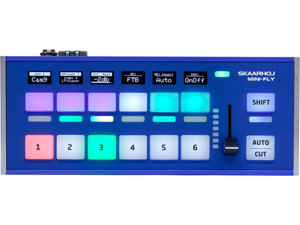 Mini Fly - cuțitul elvețian al controlorilor! Datorită Mini Fly super compactă și super flexibilă, controlerele SKAARHOJ excelează în comutarea live. Este ideal pentru producții live mici cu șase camere, monitorizare a sunetului și tranziții. Și șase butoane cu patru direcții cu afișaje OLED își extind performanța dincolo de imaginație.