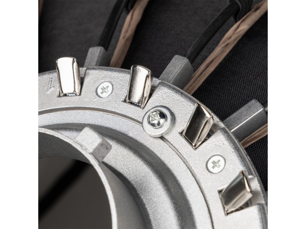 Cu două cârpe moi puternice și foarte transparente și o grilă de tip fagure din material textil de înaltă calitate de 45° furnizată împreună cu softbox-ul, puteți crea în mod liber un efect de lumină moale mai subtil și mai texturat pentru a satisface nevoile diferitelor scene.Baionetă standard Bowens