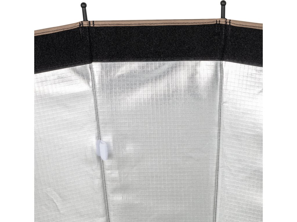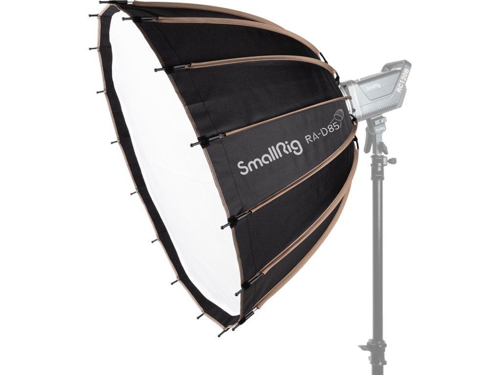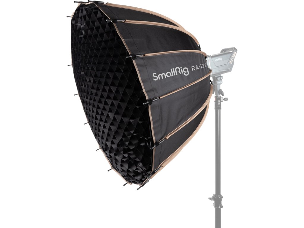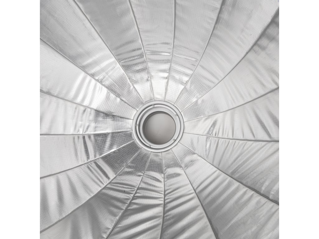 Designul revoluționar al nervurilor exterioare este de a se asigura că interiorul este neted, de a reduce pierderea de lumină și de a obține un efect de lumină mai strălucitor și mai moale, precum și de a preveni deplasarea și spargerea nervurilor interioare tradiționale. Cu 16 nervuri militare din oțel rezistent la temperaturi ridicate, mai ușoare, mai rigide și mai elastice decât nervurile obișnuite din oțel inoxidabil și de 3 ori mai ușor de instalat, pot rezista la zeci de mii de presiuni fără deformare. Softbox-ul are o suprafață luminoasă 3D și sferică. Designul atent al protectorului de mână din silicon previne frecarea mâinilor în timpul dezasamblarii.Difuzor și grilă din material textil