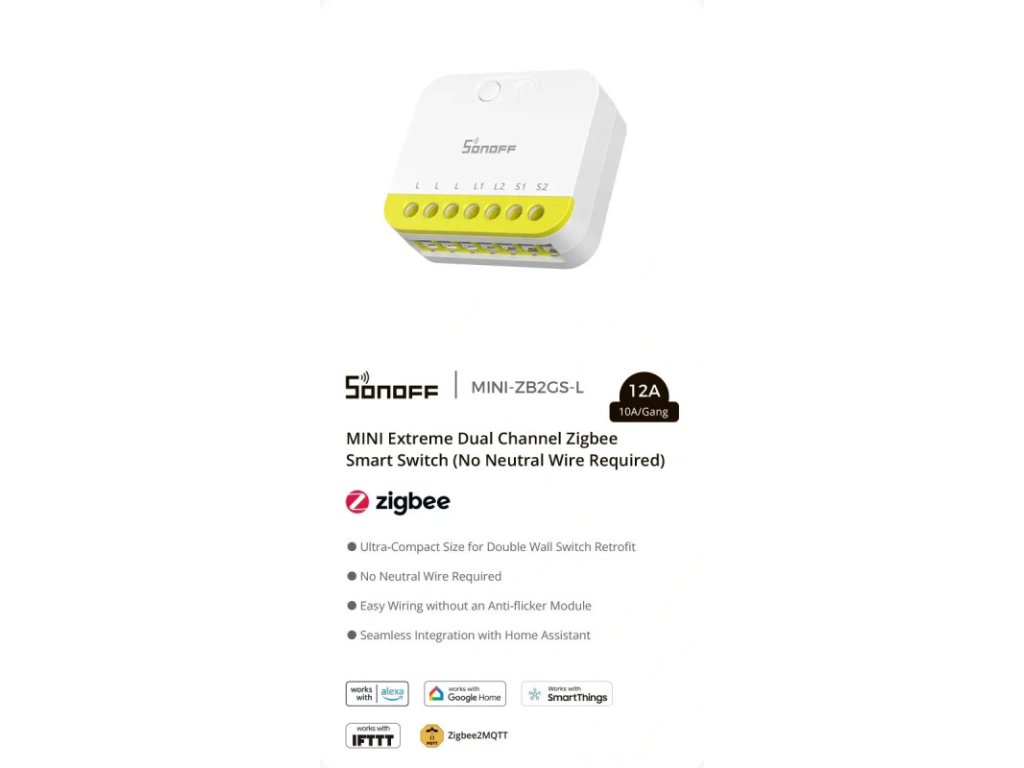 SONOFF MINI-ZB2GS-L Mini Extreme ZigBee Comutator inteligent cu două canale (nu necesită fir neutru)