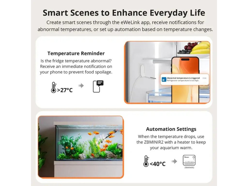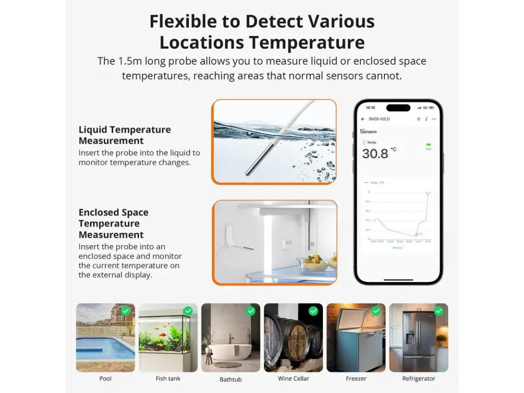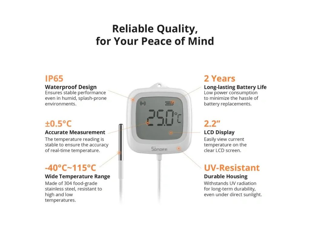 SONOFF SNZB-02LD Termometru inteligent LCD Zigbee IP65 (versiunea cu sondă)