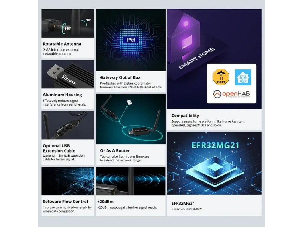 SONOFF ZBDongle-E Zigbee 3.0 USB Dongle Plus - Adaptor USB Zigbee