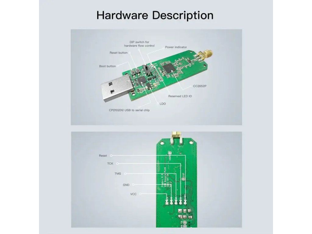 Dispozitivul este preinstalat din fabrică cu firmwareCoordonator Z-Stack 3.x.0, deci este gata de utilizare imediat ce îl scoți din cutie. Conectează-l pur și simplu la un server, un mini PC sau la un hardware Home Assistant și începe să conectezi dispozitive Zigbee compatibile. Datorită cipului fiabilTI CC2652Pși punte USBCP2102(N)Acest adaptor USB Zigbee oferă comunicare stabilă, integrare perfectă și performanțe excelente pentru automatizarea avansată a casei inteligente.