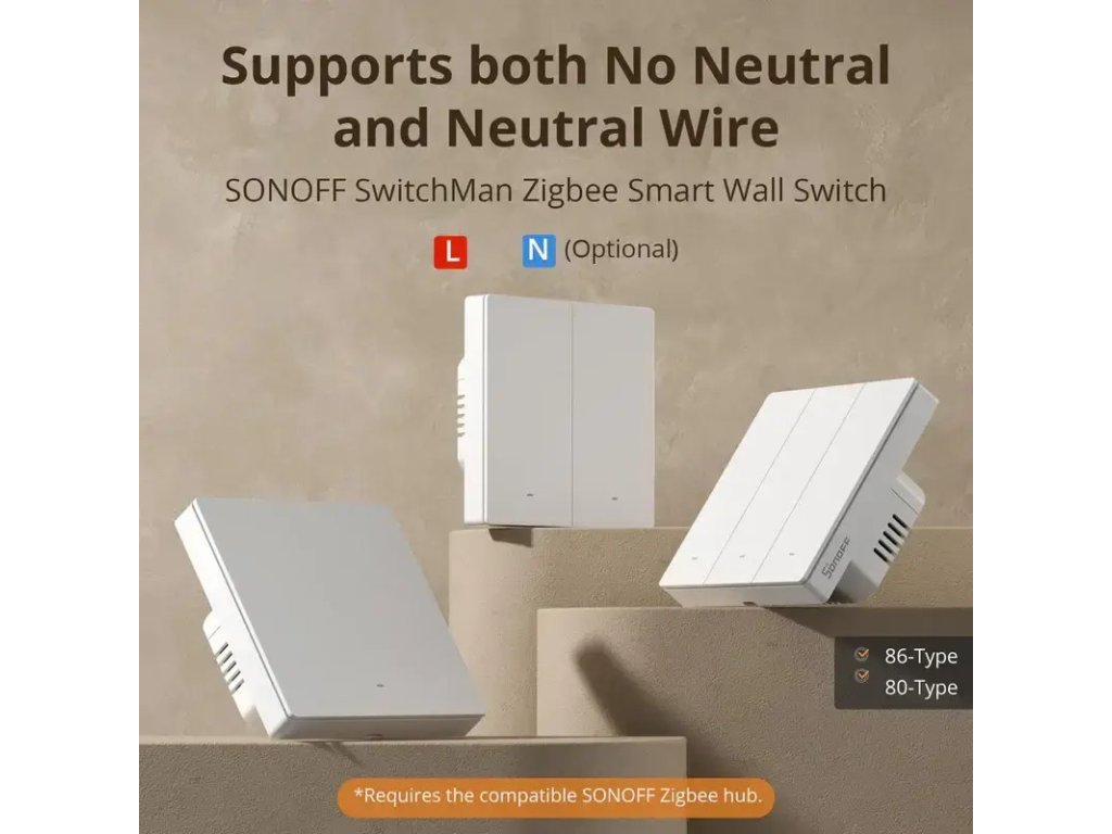 SONOFF ZBM5 SwitchMan Întrerupător inteligent de perete Zigbee, 3 butoane, 80 mm (tip UE)