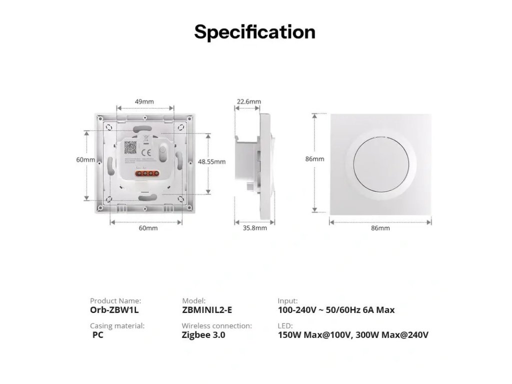 SONOFF ZBMINIL2-E, seria Fusion Orb-ZBW1L, întrerupător inteligent de perete Zigbee (nu necesită fir neutru)