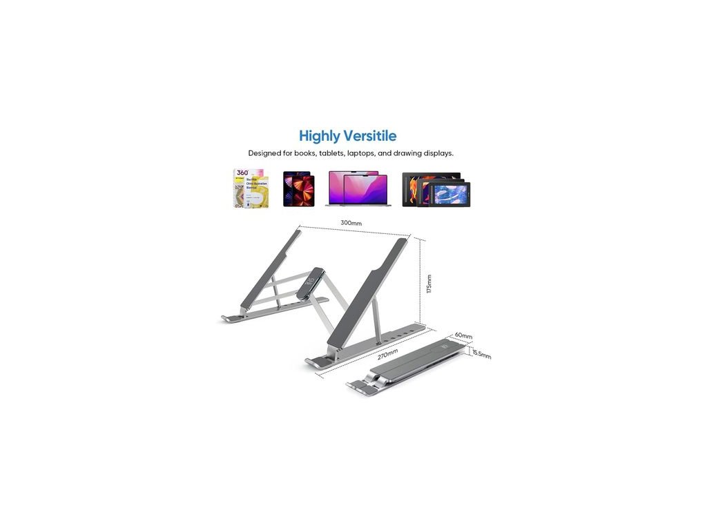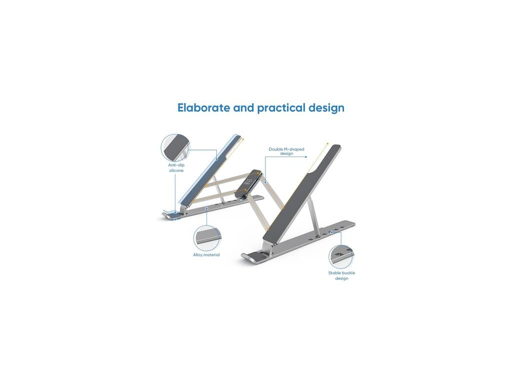 Suport portabil pliabil pentru tablete grafice cu dimensiuni de până la 12 până la 16", material anti-alunecare, realizat dintr-o combinație de acoperire ALU și siliconParametri suplimentari