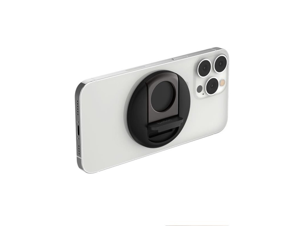 Suportul Belkin iPhone cu suport MagSafe pentru MacBook - negru este un accesoriu practic care vă permite să vă conectați iPhone-ul cu tehnologie MagSafe la MacBook. Acest suport elegant și funcțional asigură acces comod la iPhone-ul dvs. în timp ce lucrați pe MacBook. Sistemul său simplu și sigur vă menține iPhone-ul la unghiul potrivit. Cu designul său negru și dimensiunile compacte, acest suport este un accesoriu practic pentru utilizarea de zi cu zi, adăugând în același timp o notă elegantă mediului de lucru.