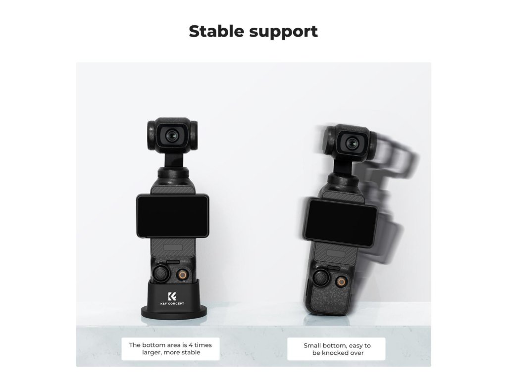 - * [Suport stabil] Baza este concepută pentru Pocket3. Suprafața inferioară mare îi permite să stea mai stabil pe masă și previne căderea.
