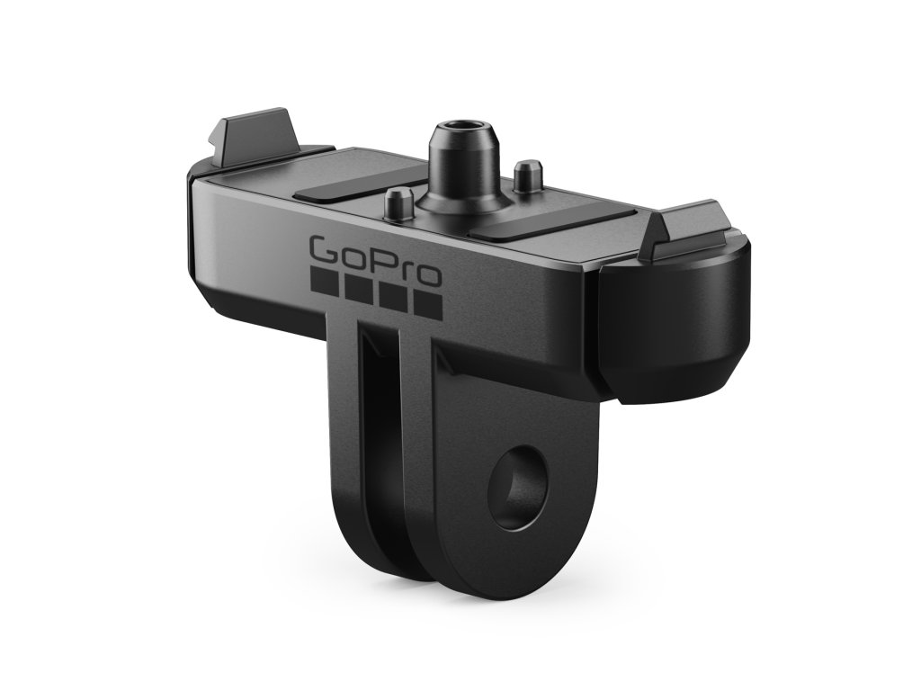 Suportul pentru cameră HERO13 Black nu a fost niciodată mai ușor și mai rapid de schimbat decât cu suportul magnetic.1 Pur și simplu atașați suportul la dispozitivul dvs. de mână, suportul pentru corp sau alt echipament preferat și schimbați cu ușurință poziția camerei direct pe traseu, pe pantă. sau în apă.2 Camera pe care o atașează la suport cu magneți, așa că pur și simplu o fixați - nu este nevoie de șuruburi pentru a fixa sau slăbi. Un zăvor dublu cu blocare automată fixează camera, doar apăsați zăvorul pentru a elibera. Suportul este, de asemenea, durabil și are un capac metalic pentru a-l proteja în deplasare.