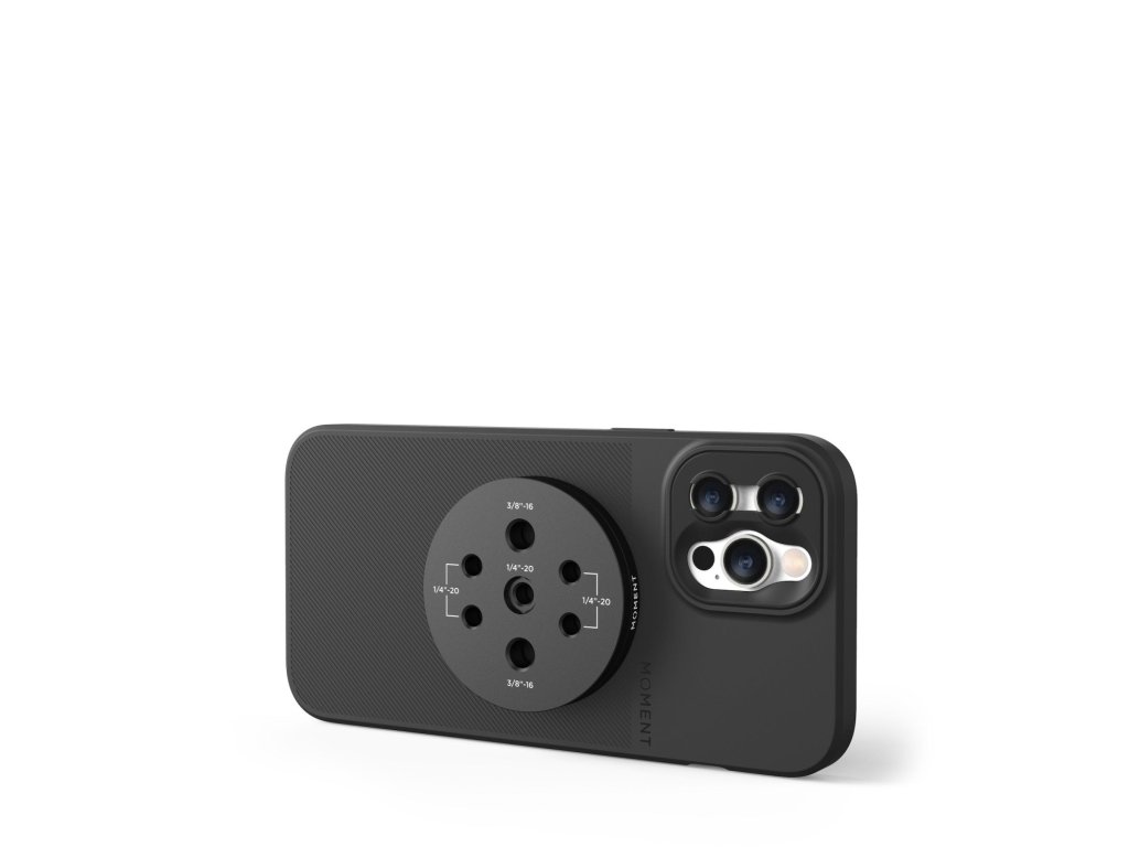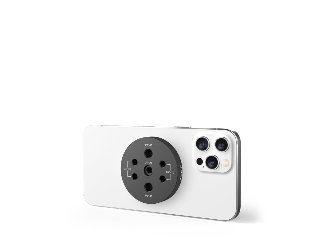 Vă prezentăm suportul cu mai multe fire - pentru MagSafe®... alias o farfurie de brânză cu cinci fire interne pe o parte și magneți foarte puternici pe cealaltă... care vă vor atașa în siguranță iPhone-ul cu MagSafe la orice. Aceasta este prima montură compatibilă MagSafe creată de realizatorii de film la momentul actual, având (2) filete femele de 3/8” și (3) filete femele de 1/4”-20. Vă permite să vă montați telefonul oriunde doriți, folosind orice accesoriu de 1/4”-20 sau 3/8”. Brațe magice, trepieduri, suporturi de atașare, capete bile, cum vrei să spui... Moment Multi-Threaded Mount vă permite să vă montați telefonul cu magneți. Acest suport poate fi folosit cu sau fără carcasă și are, de asemenea, o matrice de magneti (M)Force patentată, care este chiar mai puternică decât accesoriile standard, oferindu-vă mai multă încredere că telefonul nu va cădea.
