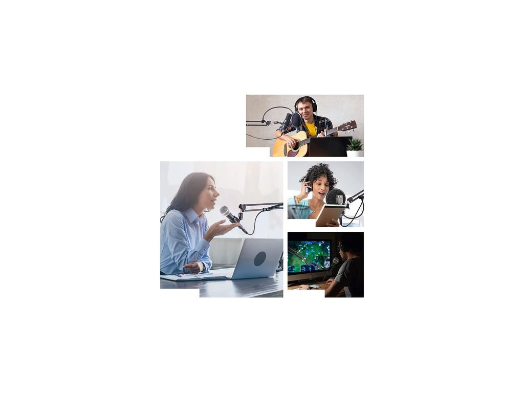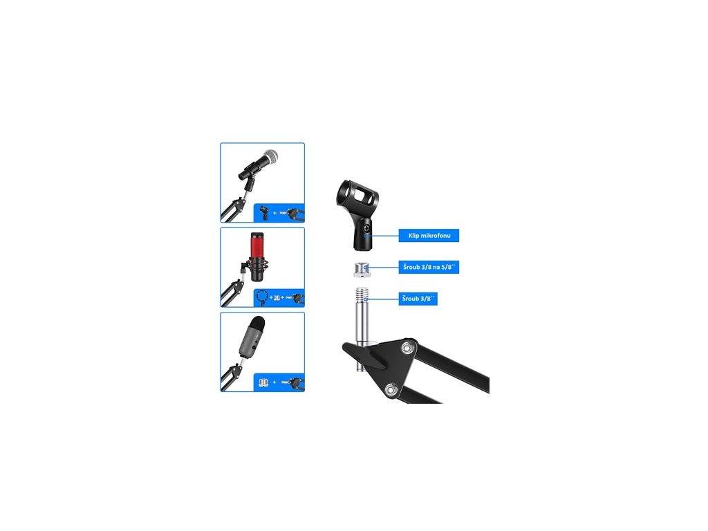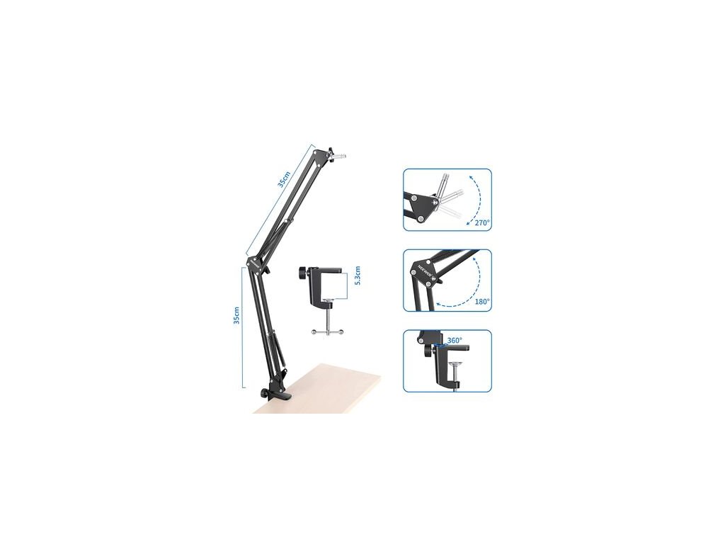 Suport pentru microfon pentru microfon cu diametrul de până la 33 mm, 2 brațe, fiecare cu lungimea de 35 cm, suport pentru masă, reducere de la 3/8" la 5/8"Parametri suplimentari