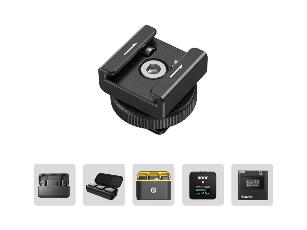 * Compatibil cu accesorii de montare cu pată de fixare, cum ar fi DJI Mic, DJI Mic 2, RODE Wireless GO II, Saramonic Blink 900 B2, Saramonic Blink 500 B2+, Hollyland Lark Max, Hollyland LARK M1 DUO, Hollyland Lark.