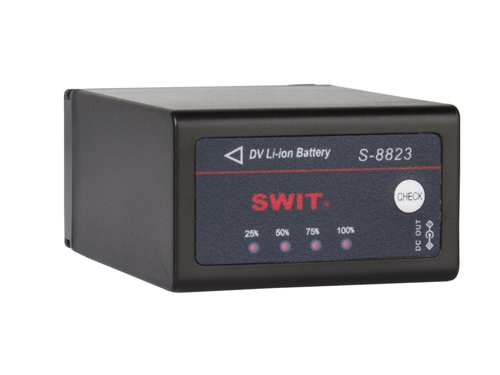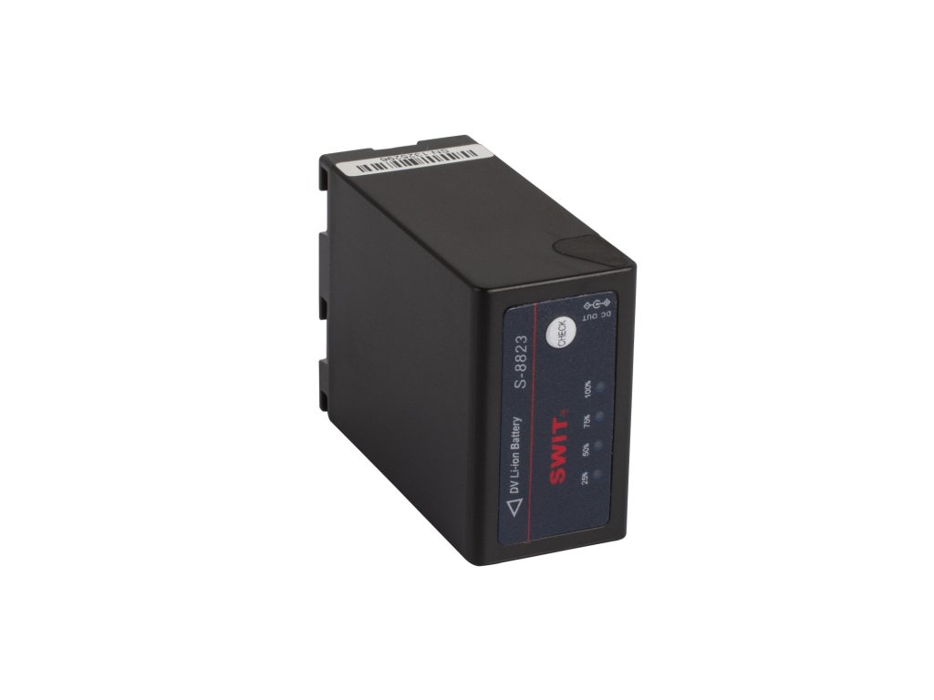 S-8823 este o baterie de schimb pentru JVC BN-VF823, compatibilă cu camera video din seria JVC GY-HM100/101. S-8823 poate face schimb de informații digitale cu camerele foto și poate afișa informații despre puterea rămasă în vizor.