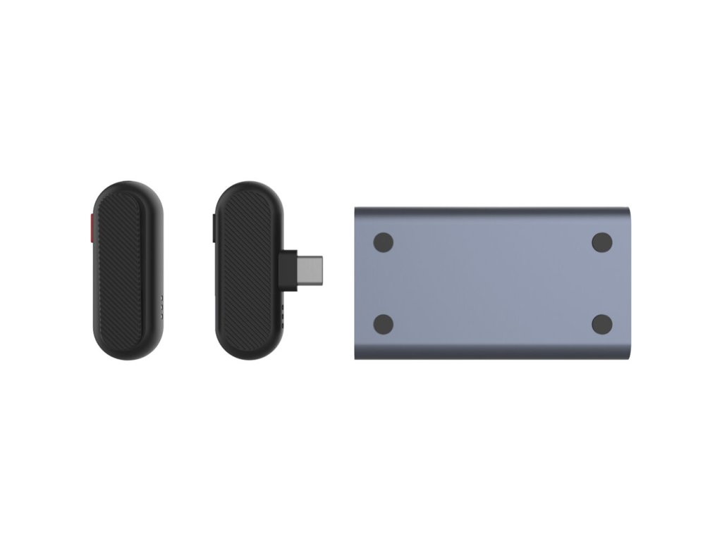 SYNCO a introdus pentru prima dată o carcasă de încărcare pentru microfon de înregistrare. Cu această carcasă, încărcarea este la fel de ușoară ca și plasarea transmițătorului în carcasă. O lumină roșie pe transmițător vă anunță că se încarcă. Partea de recepție este alimentată de telefon.