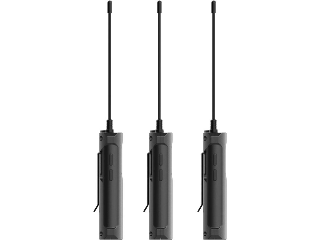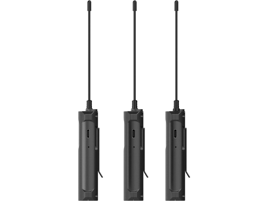 Accesoriile furnizate includ 3x clemă pentru curea, 1x reducere de soclu pentru bliț și cablu de conectare TRS/TRRS/XLR de 3,5 mm. Sistemul include și baterii interne (3,7V/1800mAh) cu o durată de până la 10 ore și reîncărcare prin USB-C (încărcare 3,5h la 5V/1A); filtru trece-înalt comutabil 75/100 Hz; buton de resetare rapidă pentru întregul sistem; și tehnologie de reducere a zgomotului... Transmițătorul acceptă atât microfon, cât și nivel de linie. Receptorul poate fi conectat cu ușurință la DSLR/DSLM folosind cablul TRS inclus, la telefoane mobile/tablete folosind cablul TRRS sau la camere profesionale folosind cablul TRS/XLR inclus. Semnalul poate fi monitorizat prin ieșirea pentru căști de 3,5 mm (100 mW / 32 ?).
