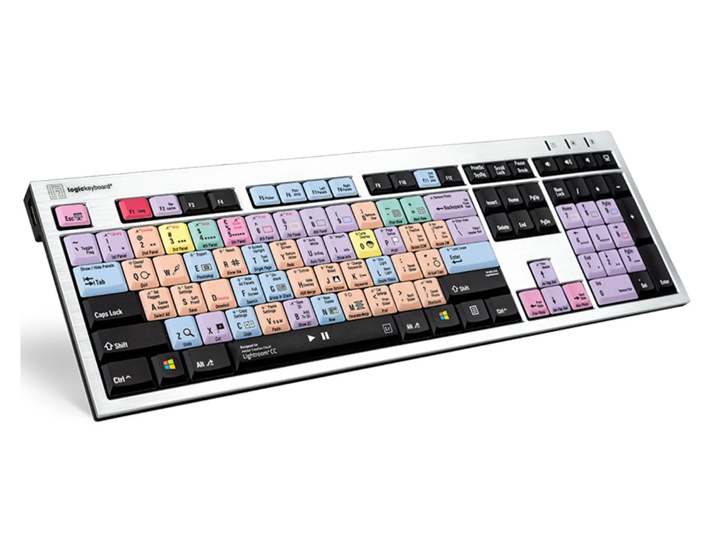 Tastatura Logickeyboard Adobe Lightroom CC PC Slimline (engleză britanică) este o tastatură personalizată, cu coduri de culori, concepută pentru a simplifica și accelera fluxurile de lucru de editare în Adobe Lightroom CC. Dispune de comenzi rapide de la tastatură etichetate clar, un design ergonomic subțire și conectivitate USB plug-and-play.