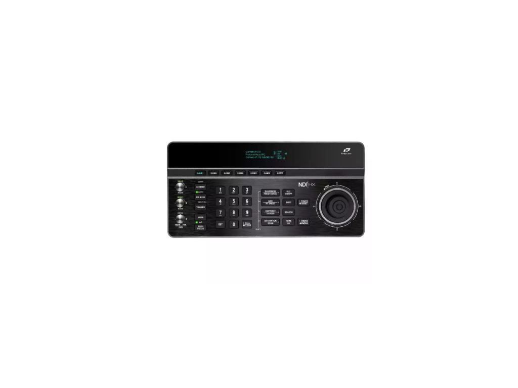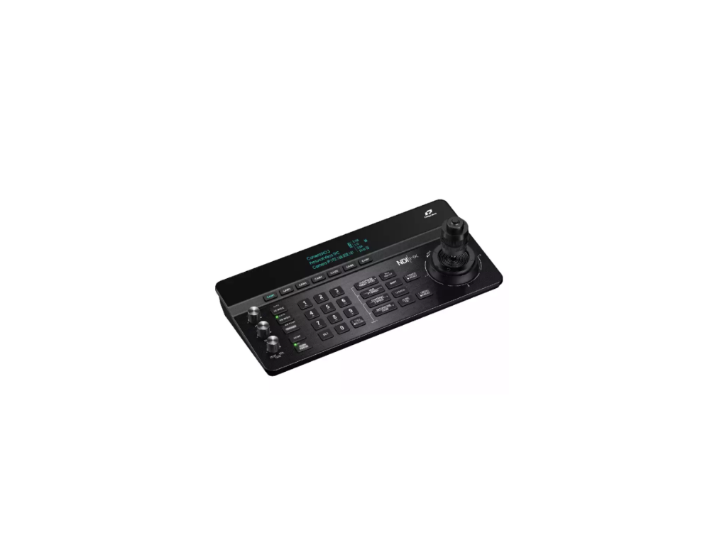 Controlerul dispune de un joystick precis în 4 direcții pentru un control lin al mișcărilor panoramice, înclinării și zoomului. Configurația intuitivă include butoane și selectoare dedicate pentru reglarea expunerii, a balansului de alb, a focalizării și a altor parametri ai imaginii în timp real. Ecranul OLED încorporat de 3,12 inci oferă feedback clar asupra stării, în timp ce cele 128 de poziții presetate permit reapelarea și poziționarea rapidă a camerei.