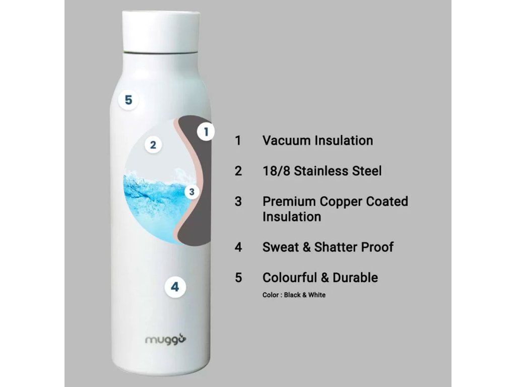 Indiferent dacă preferați ceaiul fierbinte sau limonada rece, termosul inteligent Muggo vi se va potrivi întotdeauna.Datorită suprafeței cu două straturi Amaterial de calitate și anumemenține temperatura băuturii timp de 24 de ore. În același timp, tucu un inel colorat pe afișajul LED, te avertizează asupra temperaturii băuturii, prevenind astfel o posibila arsura. Termosul inteligent Muggo conține internbaterie de mare capacitate, care, la nevoie, pur și simplureîncărcați cu un adaptor elegant. Doar conectați-l la priză și puneți-l pe capacul termosului de încărcare.Rezumatul proprietăților
