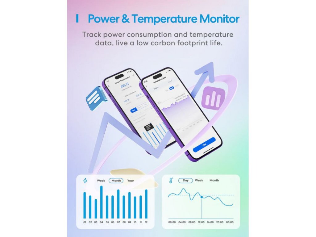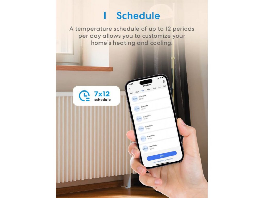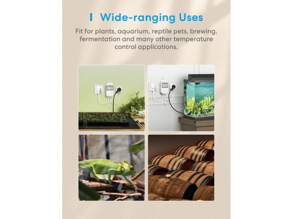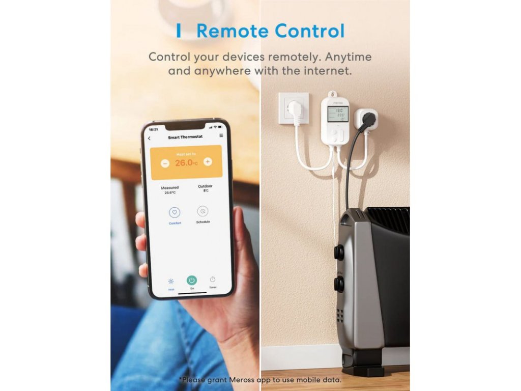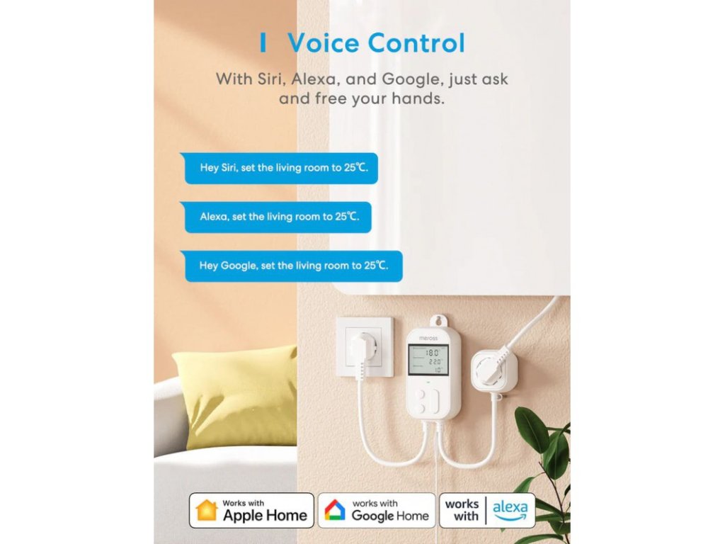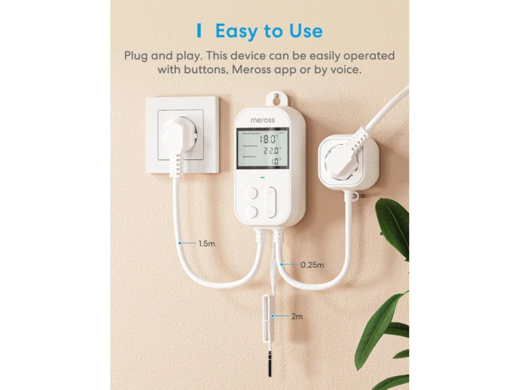 Termostat inteligent pentru priză Wi-Fi Meross, încălzire și răcire, MTS960HK (versiunea UE)