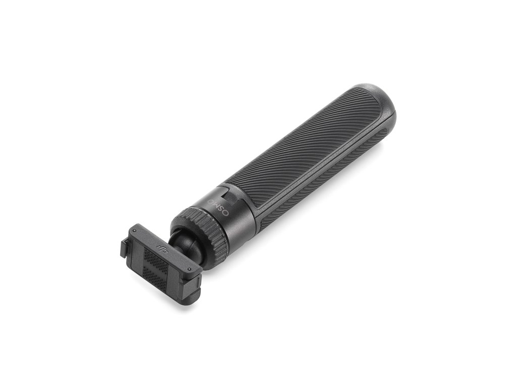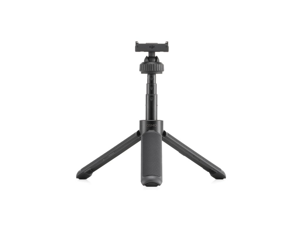 Dimensiunea palmei atunci când este depozitată. Poate fi extins în patru părți. Este ținut confortabil pentru o lungă perioadă de timp atunci când filmați sporturi recreative sau vloguri. Un trepied încorporat în partea inferioară poate ține dispozitivul în siguranță pentru o fotografiere stabilă. Articulația sferică din partea superioară permite reglarea rapidă și convenabilă a unghiului.