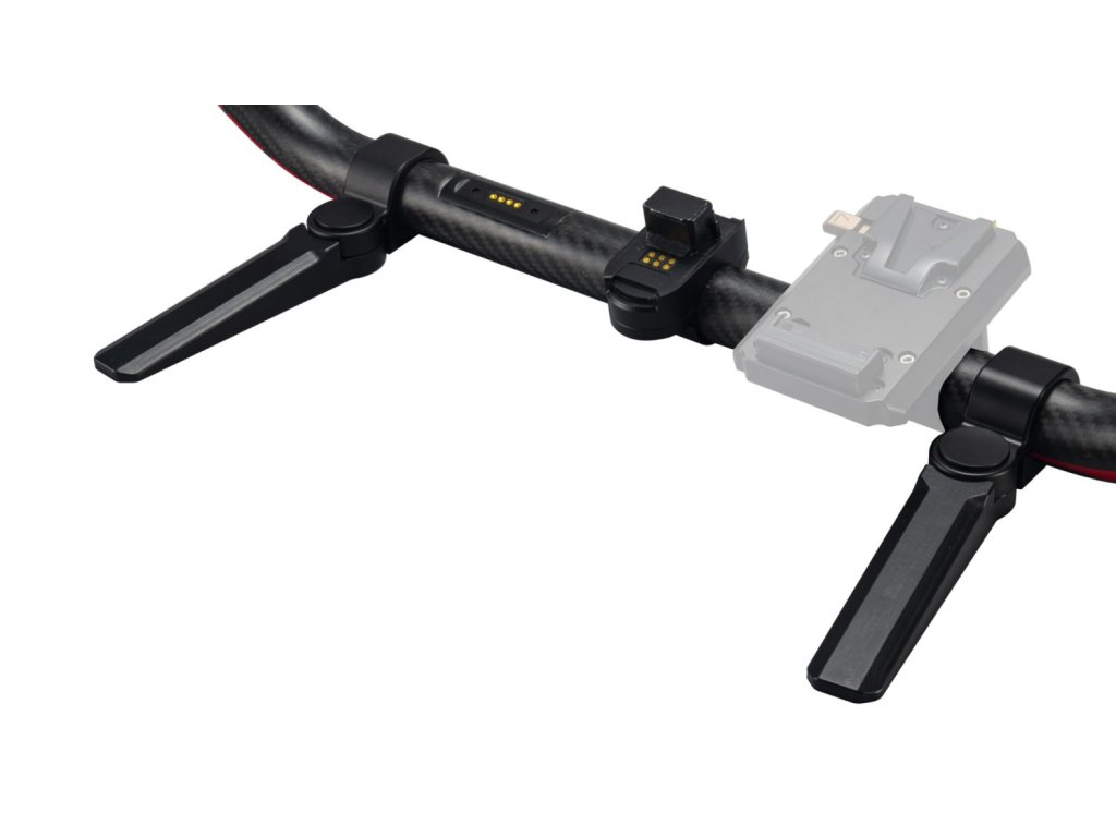 Sistemul vă permite să alimentați RS2 sau RS3 Pro fie cu o baterie aurie, fie cu o baterie V-Mount, fie cu mânerul bateriei cardanului. Mânerul inel avansat vă permite să montați mânerul bateriei deasupra inelului, care servește atât ca sursă de alimentare, cât și ca mâner superior.