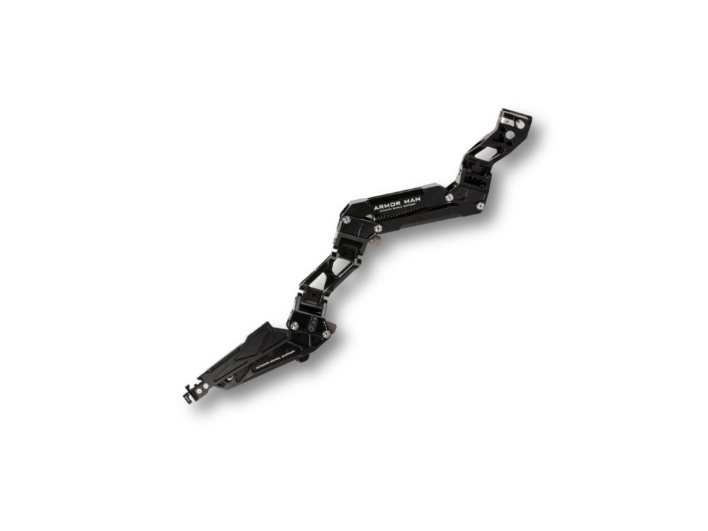 Armorman 3.0 Arm (R) – Acest braț drept stabilizat cu amortizare pentru Armor Man 3.0 se atașează la spatele vestei Armor Man 3.0 atunci când se află în modul de funcționare normal și poate fi atașat și la partea superioară a vestei atunci când funcționează într-o configurație deasupra capului. Când brațul este pornit, are două butoane de tensiune reglabile care vă permit să reglați greutatea gimbalului/aparatul camerei, precum și stilul de control preferat (indiferent dacă doriți brațele înclinate departe de corp sau strânse și compacte pe corp. ). ).