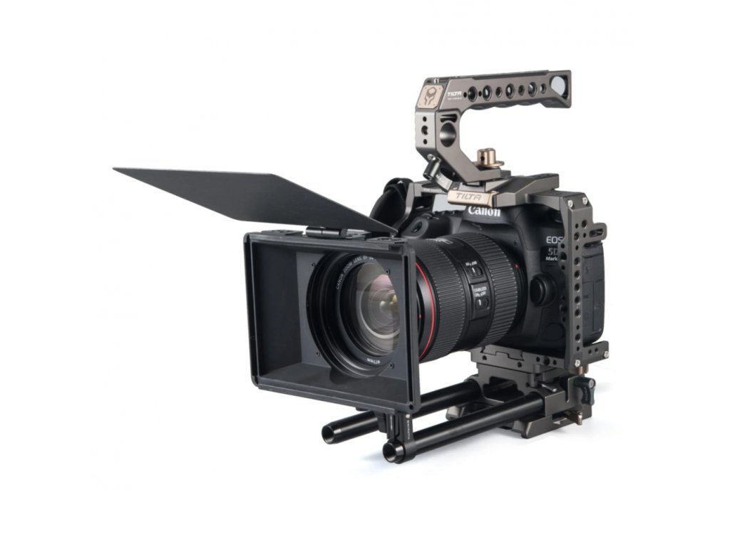 Compact și ușor. Design integral. Mini Matte Box oferă protecție suplimentară pentru obiectivul dvs. și poate ajuta la prevenirea erupțiilor cu steagul francez de sus inclus. Punctele de montare 1/4-20 și 3/8-16 și suporturile cu pantof rece oferă puncte de montare pentru orice accesoriu, inclusiv lumini LED sau microfoane. Setul include, de asemenea, un suport pentru cutia mată de 15 mm care se atașează la partea inferioară a cutiei mate și blochează lentila în poziție pentru a asigura stabilitatea. (nu suporta lentile frontale telescopice).