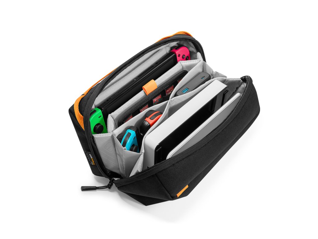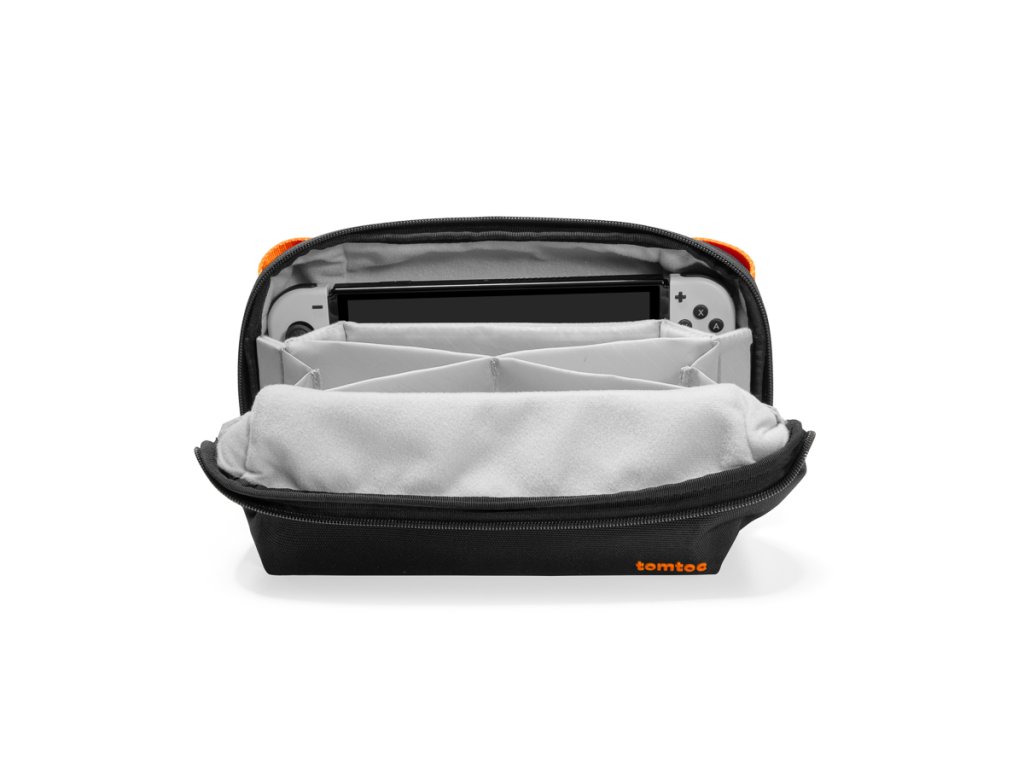 Nintendo Switch și consolele de jocuri OLED vă permit să vă bucurați de divertismentul preferat oricând și oriunde. Pe de altă parte, călătoria cu ei aduce multe riscuri. Puteți încredința sarcina de a le proteja de căderi, șocuri și chiar băuturi vărsate acestui caz de la compania tomtoc.Corpul său este conceput pentru a vă menține dispozitivul în siguranță. O căptușeală moale și un sistem de întărire sofisticat se vor ocupa de acest lucru. Trucul adevărat este designul patentat al spațiului controlerului, care oferă protecție superioară joystick-ului împotriva apasării. Pe suprafața ambalajului a fost folosită o țesătură specială din fibră de poliester de înaltă rezistență. Este rezistent la apă și deteriorări mecanice.