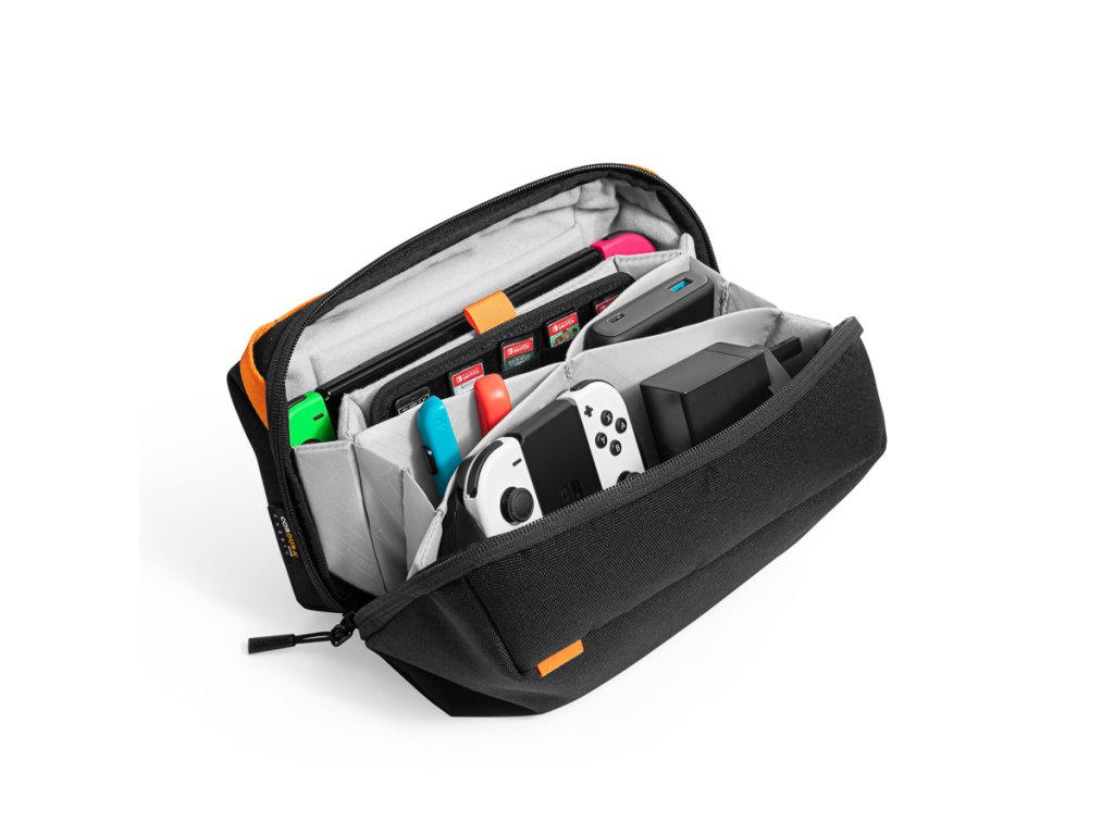 Tocmai micile detalii puse la punct cu care își răsfață fanii. Și nici de data asta nu îi va dezamăgi. El a echipat carcasa cu fermoar YKK de înaltă calitate, care asigură o funcționare lină de fiecare dată când este deschisă sau închisă. Ca să nu se plictisească niciodată, a adăugat o tavă cu 20 de sloturi pentru cărți de joc. Cu toate acestea, puteți elimina revista în orice moment, în funcție de nevoile dvs. Pentru un acces ușor la Nintendo și accesoriile stocate, carcasa poate fi deschisă până la un unghi de 60°. Când o vei transporta, vei aprecia cureaua practică într-o culoare contrastantă stilată.Utilizare multifuncțională