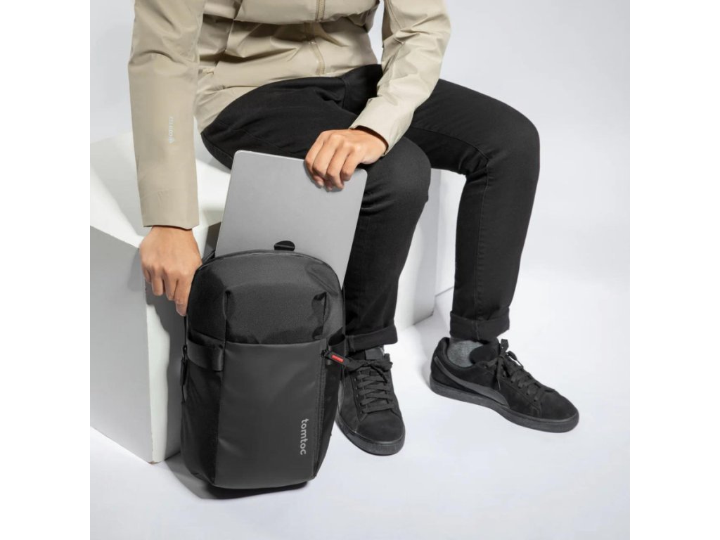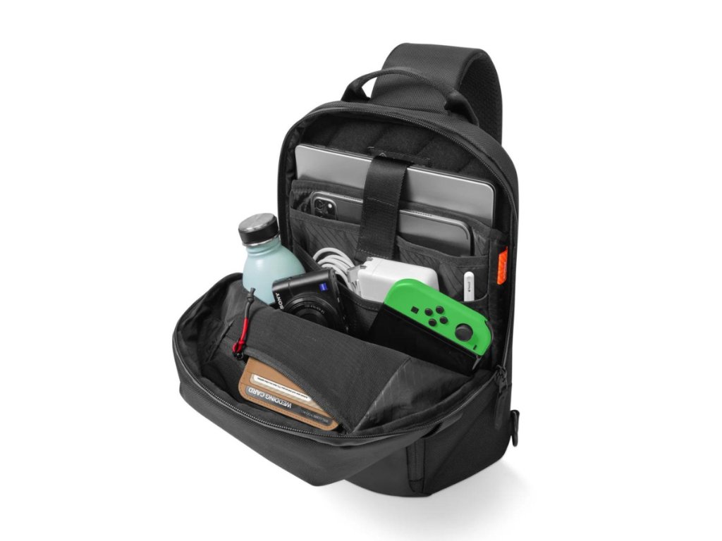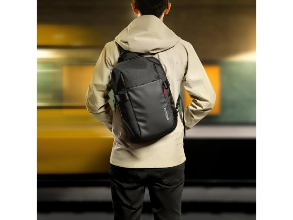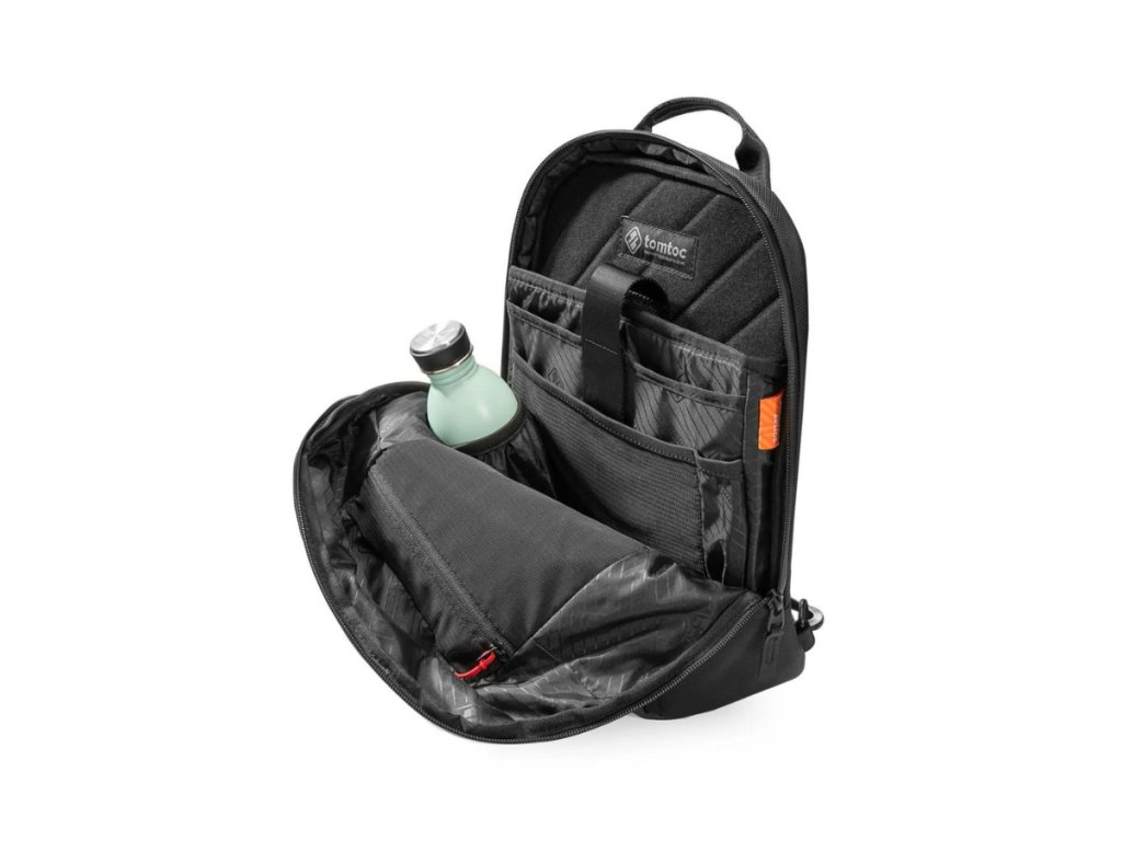Orașul este teritoriul tău? Este exact cazul Geanta Navigator Sling de la Totoc! A mea estetică elegantă și minimalistă se potrivește bine cu peisajul urban. Chiar și dimensiunile sale sunt adaptate acestui mediu frenetic. Rucsacul nu este deloc robust, astfel încât să nu-ți restricționeze mișcarea, în ciuda acestui fapt oferă suficient spațiu de depozitare pentru naveta zilnică a munci sau a studia. A mea capacitate totala de 7 litri vă va permite să-l utilizați fără restul mulțumesc sistem elaborat de compartimente și compartimentări. Accesoriile electronice, precum și cărțile sau documentele, își pot găsi locul în buzunarul principal. Nu există lipsă compartimente pentru laptop si tableta. Cel mai mare folosește suport al unui panou din spate solid și are căptușeală moale, pentru a vă proteja laptopul de șocuri și zgârieturi. Tomtoc garantează suficient spațiu pentru a stoca un MacBook Air/Pro de 13 inchi. Înăuntru există și buzunar elastic pentru sticla de baut. Această amplasare oarecum neobișnuită permite păstrarea liniilor fine ale rucsacului. Două buzunare exterioare în față sau partea din spate nu afectează deloc designul elegant. Sunt ascunse și vor fi dezvăluite doar prin tragerea fermoarului. Le veți folosi în primul rând pentru a stoca obiecte de valoare și alte lucruri mici pe care doriți să le aveți rapid la îndemână.