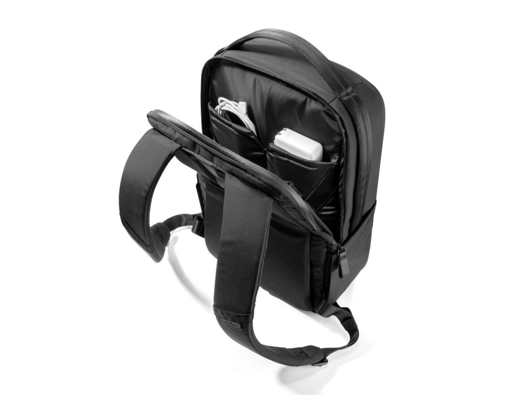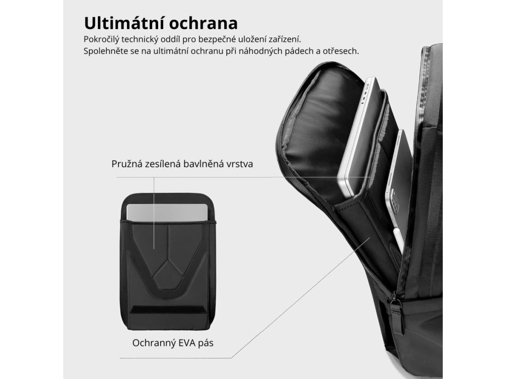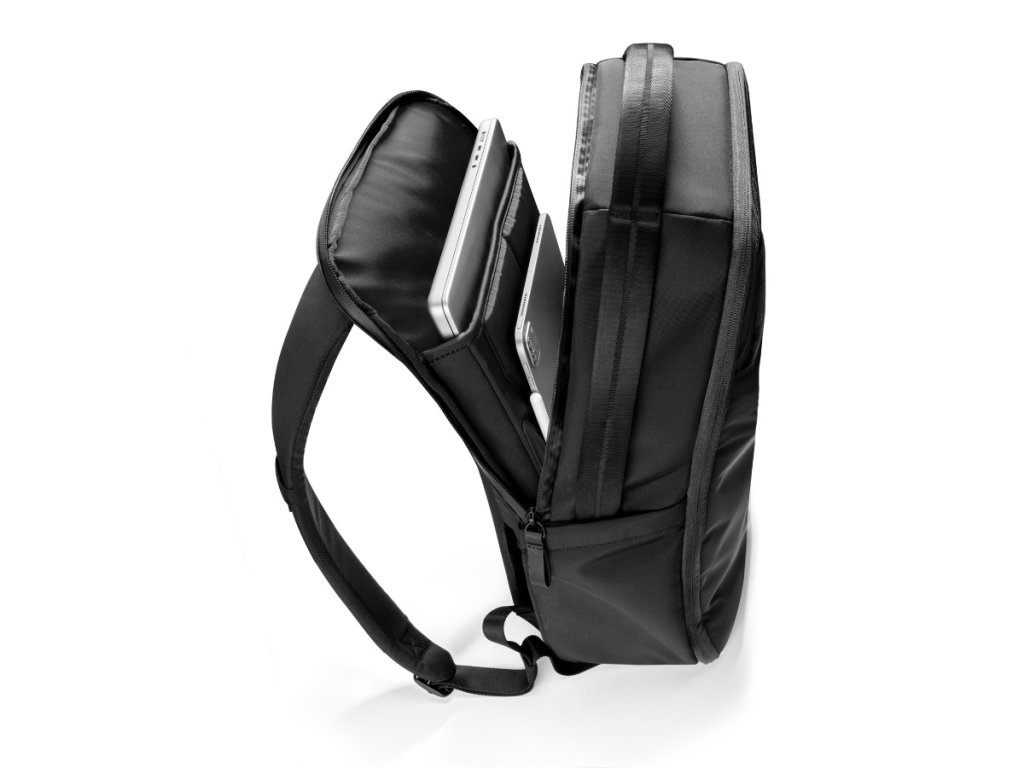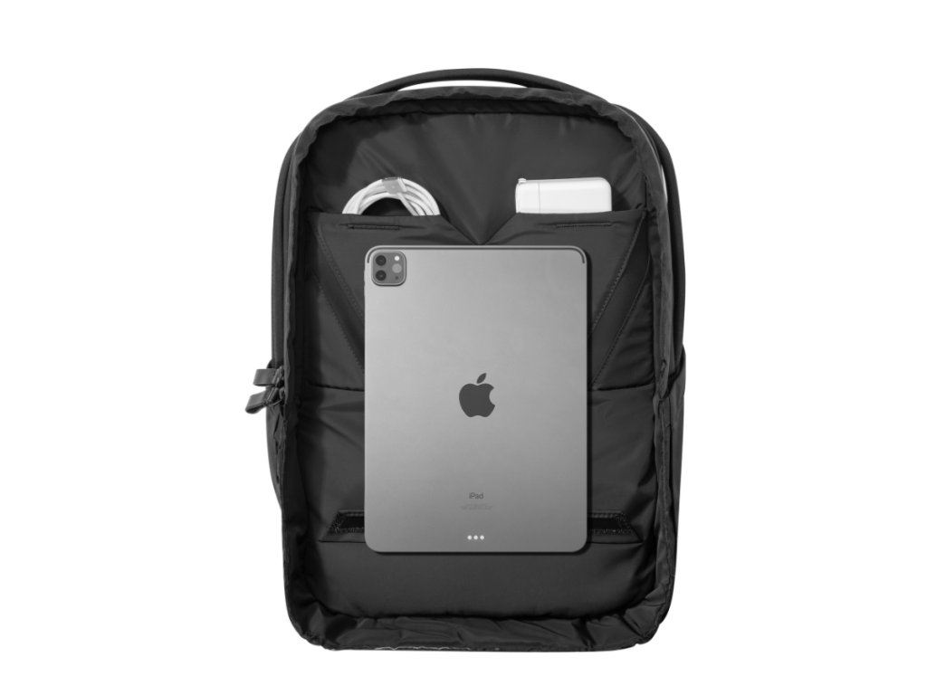 Merită multe laude pentru astaDepartamentul Tehnic. Este dotat cu mai multeelemente care asigură protecția mediului dispozitivului și asigură o absorbție maximă a șocurilor în caz de cădere. Sunt dominate de căptușeală moale și utilizatețesătură LYCRA®, care protejează șasiul laptopului de zgârieturi. Este o adevărată specialitateinserție fixă în partea inferioară a acestei secțiuni. Locația sa poate fi schimbată și creată cu ajutorul Velcrozona de tabletă ridicată. Nu se va scufunda prea jos și poți ajunge la el mai ușor. Dacă nu utilizați această opțiune, puteți plasa aici elemente foarte lungi - cum ar fi o tastatură de dimensiuni de călătorie.Această parte a rucsacului cu 2 compartimente și 2 buzunare poate încăpea un laptop de până la 16 inchi, iPad Pro de 12,9 inchi și alte accesorii. Utilizarea este o chestiune fireascăfermoar YKK AquaGuard impermeabil pentru protecție împotriva intemperiilor.Totul pentru confort maxim