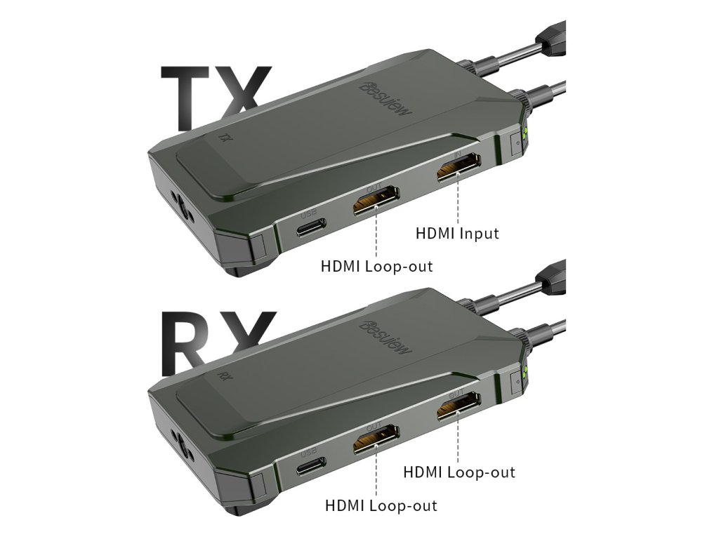 Porturi universale, configurare rapidă Intrare semnal Plug-and-Play:Transmițătorul are o intrare HDMI și o ieșire HDMI, permițând conectarea ușoară a unei camere foto sau a unei camere mirrorless și monitorizarea locală pentru o compunere ușoară.