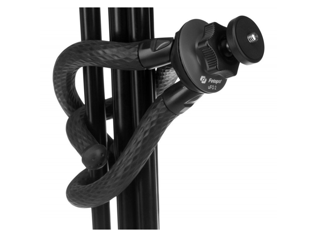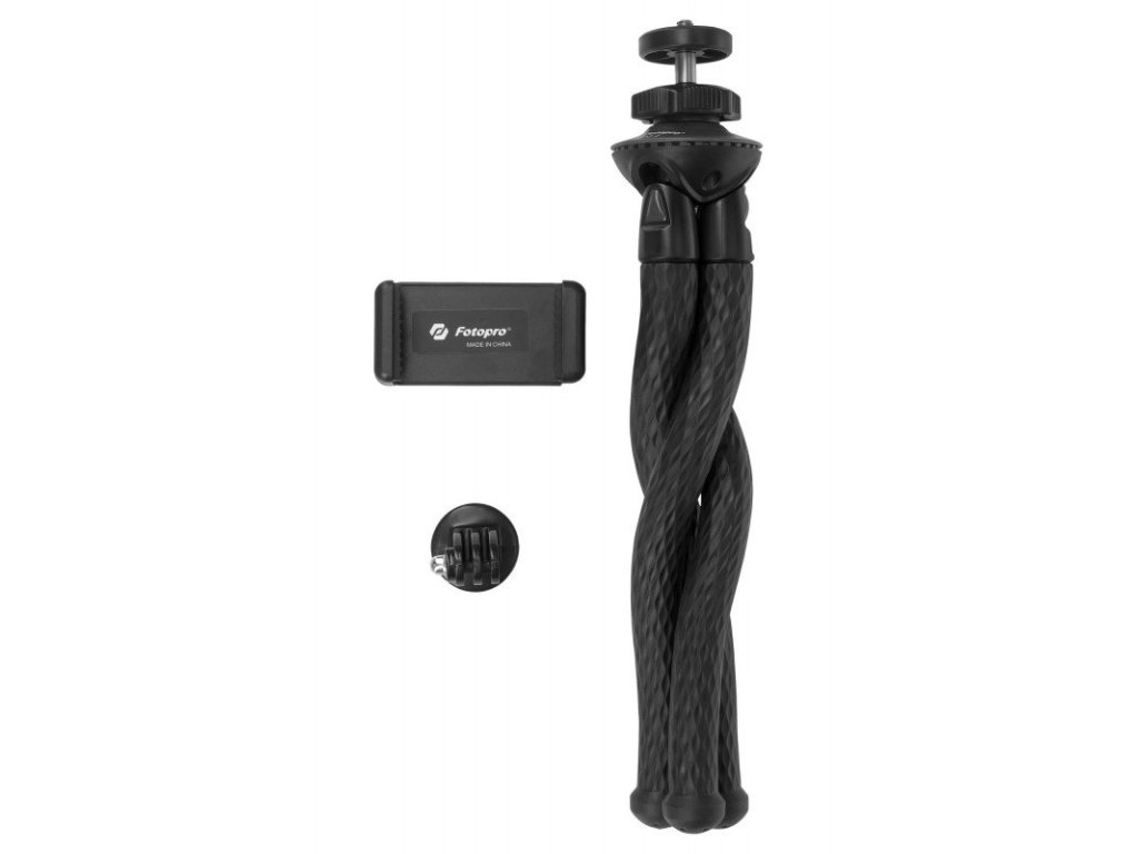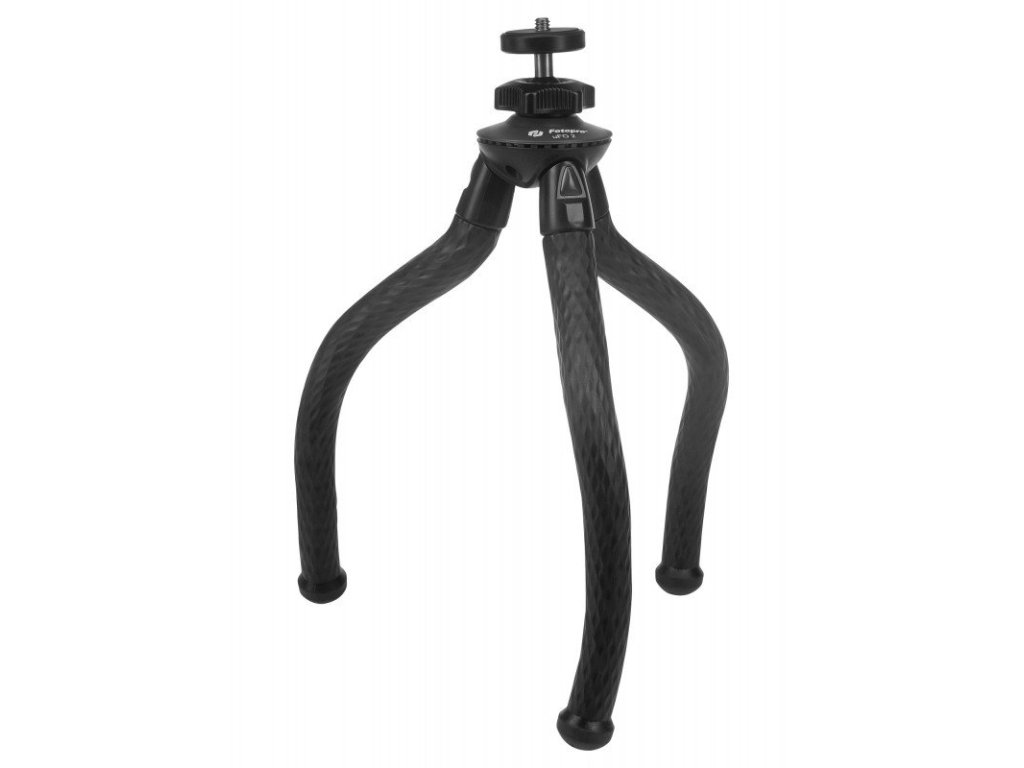 Fotopro uFO 2 - negru este un trepied ușor și versatil conceput pentru a funcționa cu smartphone-uri, camere sport și camere mici. Avantajele sale vor fi apreciate în special de călători, vloggeri și sportivi. Trepiedul uFO 2, în ciuda dimensiunilor sale compacte, oferă multe posibilități și aplicații. Picioarele sale flexibile, acoperite cu cauciuc și anti-alunecare vă permit să montați camera aproape oriunde. Capul sferic incorporat permite setarea rapida a cadrului dorit. Trepiedul este fabricat din materiale plastice de cea mai înaltă calitate pentru rezistență și greutate redusă. Fotopro uFO 2 dispune de un suport standard pentru trepied de 1/4", compatibil cu majoritatea camerelor și camerelor video. Sunt incluse, de asemenea, un adaptor de montare pentru sistemul GoPro și un suport pentru telefon. Specificații: model trepied: uFO 2+SJ-85+GA -1 lungime pliată: 28,5 cm lungime picior: 20 cm greutate: 230 g capacitate de ridicare: 800 g picioare flexibile acoperite cu material cauciuc anti-alunecare cap sferic 1/4"-mascul trepied Suport telefon GoPro (compatibil cu telefoane de la 5.6) cm până la 8,4 cm lățime) culoare: negru Conținutul setului: trepied UFO 2 - adaptor de montare negru pentru suportul de telefon cu sistem GoProParametri suplimentari