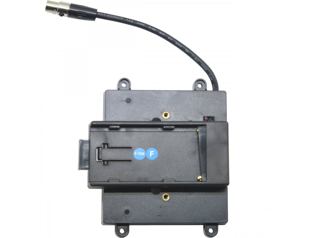 Alimentați-vă monitorul F-7H cu o baterie Sony NP-F770/F970 prin atașarea acestui suport pentru baterie de la TVLogic. Suportul Sony NP-F770/F970 se atașează la spatele monitorului F-7H și se conectează la portul de alimentare al mini-monitorului XLR cu 4 pini. Oferă 12 V DC, 3 A alimentare.