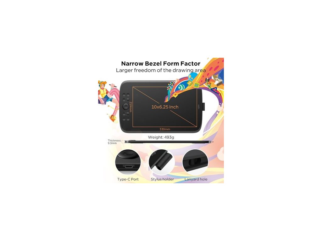 Tabletă de desen pentru computer Ugee M908 fără afișaj, desktop de 10,1 inchi, 8 taste de comandă rapidă și stylus fără baterie, suport Windows/Mac/Android.Parametri suplimentari