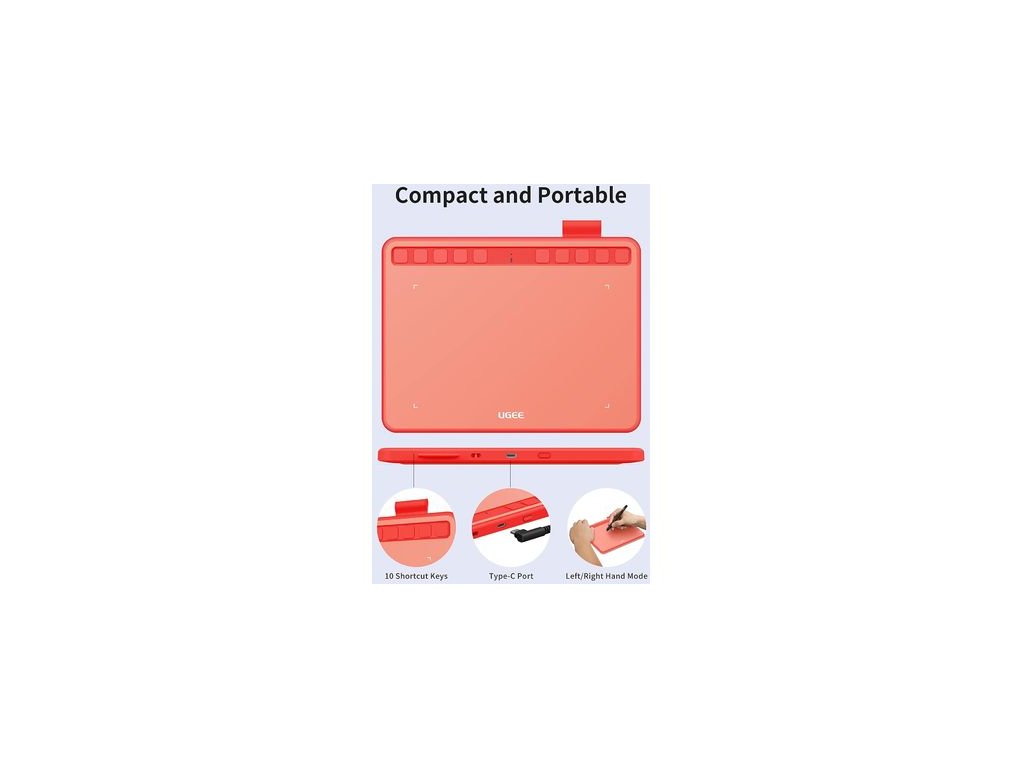 Tabletă de desen pentru computer Ugee S640, zonă activă 6,5×4", 10 butoane fierbinți, stylus fără baterie cu 8192 de niveluri de sensibilitate la presiune, suport pentru înclinare la 60°.Parametri suplimentari