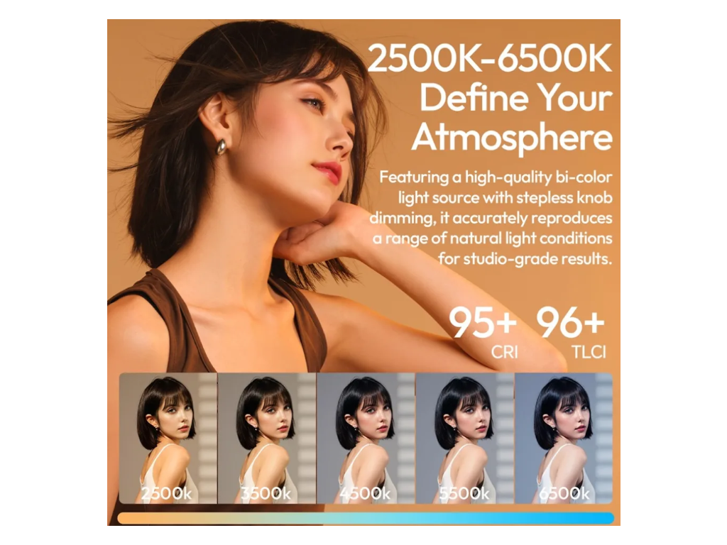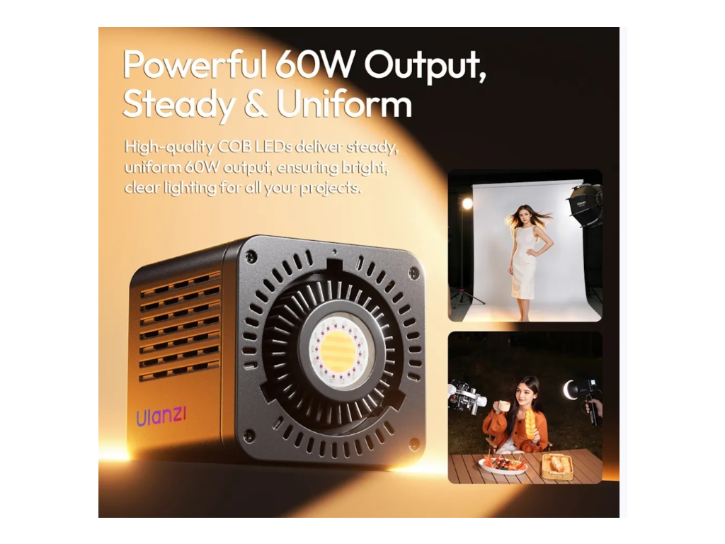 Cu o baterie încorporată de 3300 mAh (aproximativ 40 de minute de funcționare la luminozitate maximă) și opțiuni de alimentare duală (DC 19V sau USB-C PD până la 100W), C60RGB oferă creatorilor libertatea de a filma în exterior sau în interior, fără întrerupere. Interfața intuitivă permite comutarea perfectă între modul CCT, modul RGB (control al nuanței și saturației la 360°) și 20 de efecte de simulare a scenei presetate pentru o iluminare creativă.
