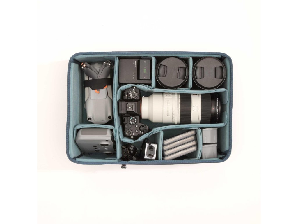Potrivit pentru camere profesionale mirrorless/DSLR – Conceput pentru camere de dimensiuni medii și profesionale, cum ar fi camerele mirrorless cu mânere sau DSLR-urile cu mânere. Lungimea sa internă generoasă de 40 cm (15,8 in) permite utilizatorilor să transporte teleobiective mai lungi, precum și alte articole care necesită o lungime mai mare. Unitatea de bază mare este ideală pentru persoanele care trebuie să împacheteze și să protejeze o mulțime de echipamente. Acces rapid lateral la cameră – Dispune de acces lateral integrat. Cu noul nostru design, puteți avea acces complet atât din spate, cât și din lateral, în același timp. Ușa laterală se conectează la ușa laterală a rucsacului Explore sau Action X și funcționează perfect. Stivuire modulară – Unitatea de bază DSLR mare are un volum puțin mai mare decât unitățile de bază DSLR medii și mici combinate. Într-un rucsac mare precum Action X70, utilizatorul are opțiunea de a plasa unitatea de bază DSLR mică deasupra unității mari pentru o capacitate mai mare a echipamentului. Husă ușoară, impermeabilă și multifuncțională - Funcția principală a husei furnizate este de a oferi spațiu de depozitare și o husă de praf pentru unitățile de bază căptușite, ideală atunci când aveți echipamentul acasă și nu îl utilizați. Menține unitatea centrală etanșă și fără praf. Funcția sa secundară este de a fi utilizată ca ladă de ambalare. Utilizatorul o poate umple cu haine sau alte obiecte comune și le poate împacheta într-un rucsac sau într-un bagaj de mână cu roți. Carcasă de protecție, pereți despărțitori și cadru din EVA - Pereții și pereții despărțitori sunt fabricați din EVA, care oferă o protecție mult mai mare decât spumele PE mai ieftine utilizate în majoritatea genților foto. Cu EVA, avem un control mai mare asupra densității și calității materialelor utilizate pentru a proteja echipamentul. Unitatea centrală are, de asemenea, un cadru intern, care asigură că pereții nu se prăbușesc niciodată sub greutatea de deasupra lor. De asemenea, menține distribuția corectă a greutății echipamentului foto și elimină lăsarea internă. Atât EVA, cât și cadrul permit pereților noștri să fie mai subțiri și să utilizeze un volum intern mai mic, oferind în același timp o protecție excelentă. Prezentare generală Unitatea centrală mare DSLR v3 se integrează perfect cu accesul lateral al rucsacurilor Action X40, X50 și Explore 35. Se potrivește și în rucsacul X70, precum și în bagajul de mână și în valiza DV. Unitatea de bază mare maximizează spațiul intern de stocare al modelelor Action X40, X50, Explore 35 și al genții Carry-On Roller. Aceasta include toate caracteristicile populare ale sistemului nostru de unitate de bază, inclusiv partiții și pereți laterali laminati din EVA, un capac detașabil ușor și versatil și un cadru intern pentru rigiditate și suport suplimentare. Adâncimea DSLR este ideală pentru camerele mirrorless și DSLR (inclusiv corpuri cu mânere) cu o înălțime de până la 16 cm (6,3 in) și este o soluție excelentă pentru corpuri multiple și obiective lungi. Specificații Garanție: 5 ani Greutate: 2,2 lb / 1,02 kg Dimensiuni exterioare (in): 11,4L x 16,5Î x 7A în inci Dimensiuni exterioare (cm): 29L x 42Î x 18A în cm Dimensiuni interioare (in): 10,6L x 15,7Î x 6,7A în inci Dimensiuni interioare (cm): 27L x 40Î x 17A în cmParametri suplimentari