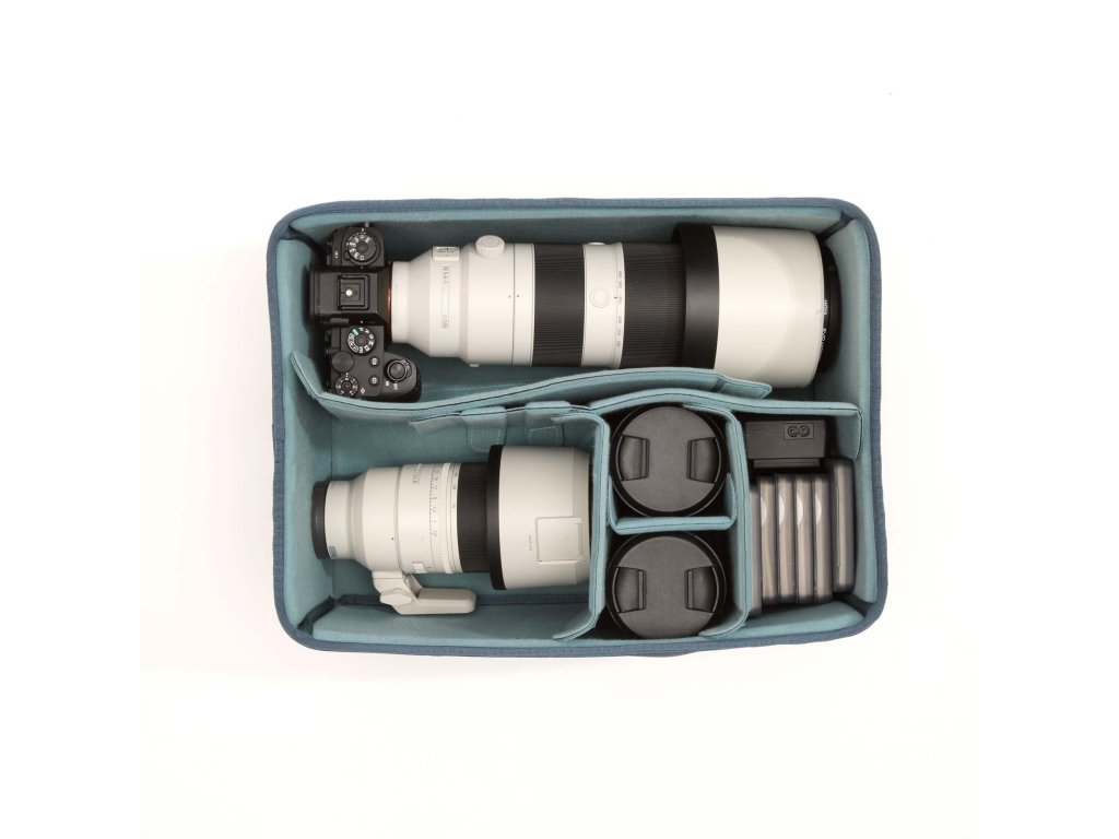 Compatibilă cu camere Cinema/DV – Dimensiunea este adaptată pentru a se potrivi camerelor cinema mai înalte de la RED, Canon și Sony. Adâncimea suplimentară o face ideală pentru împachetarea camerelor DSLR sau a camerelor mirrorless gata de filmare și chiar poate susține o dronă DJI MAVIC așezată vertical. Deși își are rădăcinile în nevoile videoclipurilor de aventură, este, de asemenea, o potrivire excelentă pentru camerele cu obiective super teleobiective mari, cum ar fi Sony 200-600. Fabricată pentru Action X70 și DV Roller – Unitățile noastre DV Core sunt special concepute pentru rucsacurile noastre X70 și DV Roller. Ambele genți oferă un volum foarte generos pentru creatorii de articole care trebuie să împacheteze și să protejeze o cantitate mare de echipament. Geantă ușoară, impermeabilă și multifuncțională – Funcția principală a genții incluse este de a depozita și acoperi împotriva prafului unitățile Core căptușite, ideală atunci când echipamentul este acasă și nu este utilizat. Menține unitatea Core sigilată și fără praf. Funcția sa secundară este de a fi utilizată ca geantă de ambalaj. Utilizatorul o poate umple cu haine sau alte obiecte comune și o poate împacheta într-un rucsac sau într-un bagaj de mână pe roți. Husă ușoară, impermeabilă și multifuncțională - Funcția principală a husei furnizate este de a depozita și acoperi unitățile centrale căptușite, ideală pentru situațiile în care aveți echipamentul acasă și nu îl utilizați. Menține unitatea centrală etanșă și fără praf. Funcția sa secundară este de a o utiliza ca spațiu de ambalare. Utilizatorul o poate umple cu haine sau alte obiecte comune și o poate împacheta într-un rucsac sau pe roți. Cadru de susținere - Unitățile centrale din seria DV au un cadru suplimentar în jurul marginii deschiderii. Acest lucru asigură căptușeala își menține forma și nu se prăbușește atunci când este transportată în interiorul rucsacului. Cadrul adaugă, de asemenea, rigiditate și susținere atât rucsacului, cât și căptușelii, ajutând la distribuirea greutății încărcăturilor grele. Prezentare generală Unitățile centrale DV sunt fabricate special pentru rucsacurile noastre Action X70 și DV Roller. Dimensiunea mare este concepută pentru a transporta și proteja toate echipamentele DV cu o adâncime suplimentară de 20 cm (7,9 in), ceea ce o face ideală pentru camerele de film/video RED sau de dimensiuni similare, precum și pentru DSLR-uri cu obiective super teleobiective până la gama Sony 200-600 mm. Ca toate unitățile de bază Shimoda, aceasta este fabricată cu divizoare și pereți laterali laminati EVA de înaltă calitate, un capac detașabil ușor și versatil și un cadru din aluminiu pentru rigiditate și suport suplimentare. Unitatea de bază DV mare nu utilizează întreaga putere a X70 și a rolei DV, așa că poate fi combinată cu unitatea de bază DSLR mică pentru opțiuni de configurare suplimentare. Specificații Garanție: 5 ani Greutate: 1,2 kg Dimensiuni exterioare (în): 31,2 lățime x 16,5 înălțime x 8,3 adâncime în inci Dimensiuni exterioare (cm): 31 lățime x 42 înălțime x 21 cm Dimensiuni interioare (în): 11,4 lățime x 15,7 înălțime x 7,9 adâncime în inci Dimensiuni interioare (cm): 29 lățime x 40 înălțime x 20 adâncime în cmParametri suplimentari