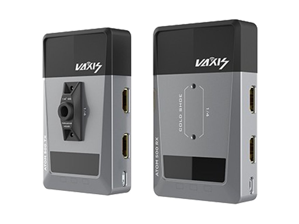 Kitul Atom 500 HDMI pentru Wireless Video TX/RX de la Vaxis dispune de o conexiune HDMI și permite transmiterea semnalelor video 1080p H.265 fără pierderi vizuale în banda de 5 GHz, cu o latență mai mică de 80 ms și o acoperire de până la 150 m. vedere. De asemenea, permite multicast Wi-Fi către până la trei dispozitive iOS pentru monitorizare și are un afișaj luminos de stare OLED, un conector USB-C pentru alimentare (cablu de tip C inclus) și upgrade, un slot pentru baterie din seria L (bateria nu este inclusă). ambalaj) ) și posibilitatea de a opri ventilatorul de răcire în timpul producției.