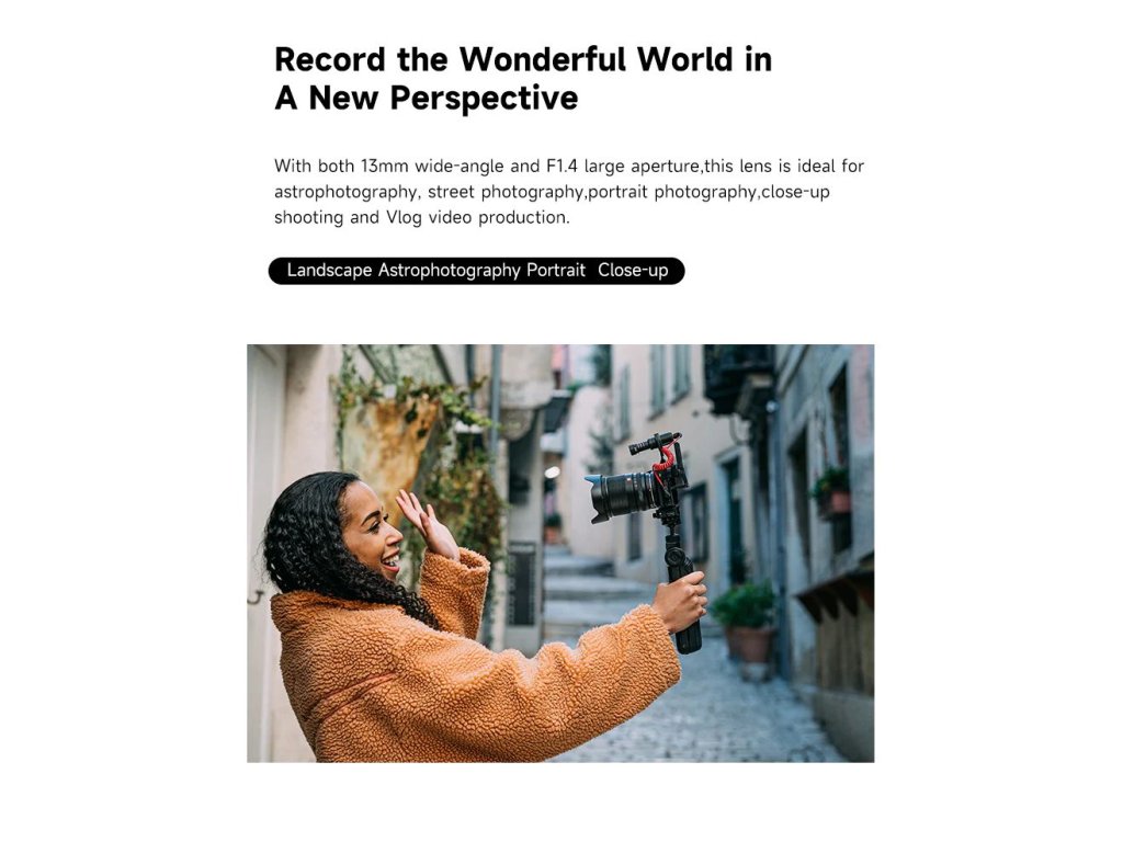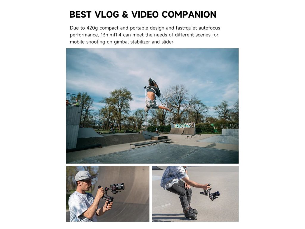 - Lungime focală: 13 mm (echivalent 20 mm FF)
