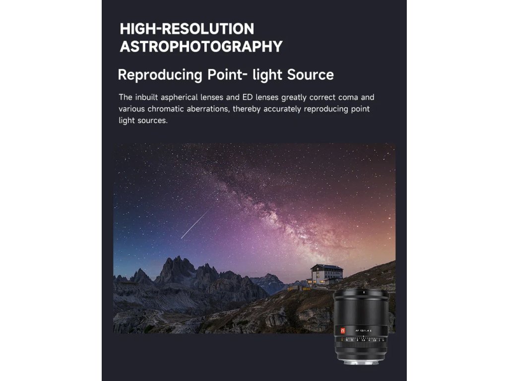 Un obiectiv cu focalizare automată cu unghi larg, cu unghi ultra-larg, cu o deschidere mare, potrivit pentru vlogging, fotografie de peisaj, arhitectură, fotografie stradală și alimentară, precum și pentru astrofotografie. Un obiectiv cu montură E APS-C de primă clasă, conceput pentru camerele SLR Sony.