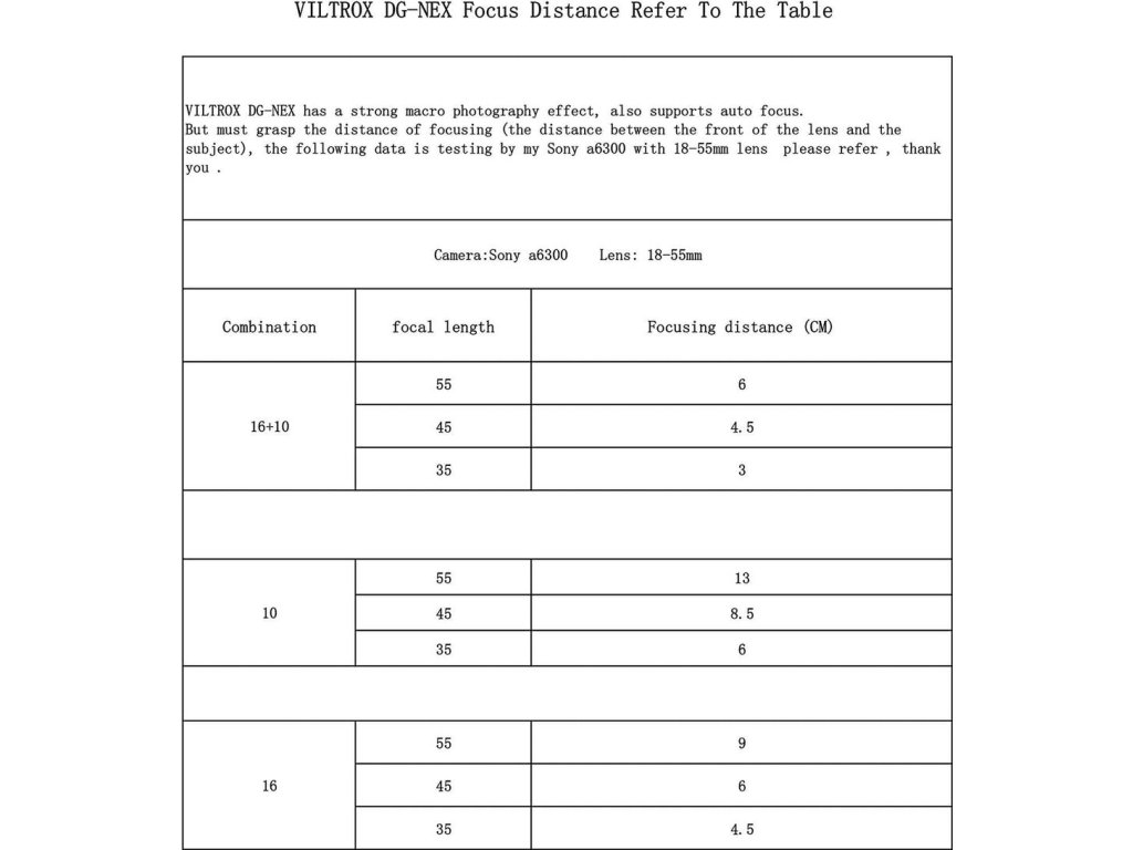- Lungimea tubului: 10mm, 16mm Potrivit pentru: Sony NEX Diametrul tubului: Aprox. 61,5 mm
