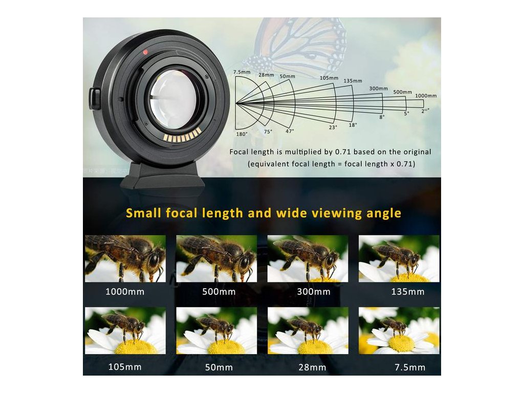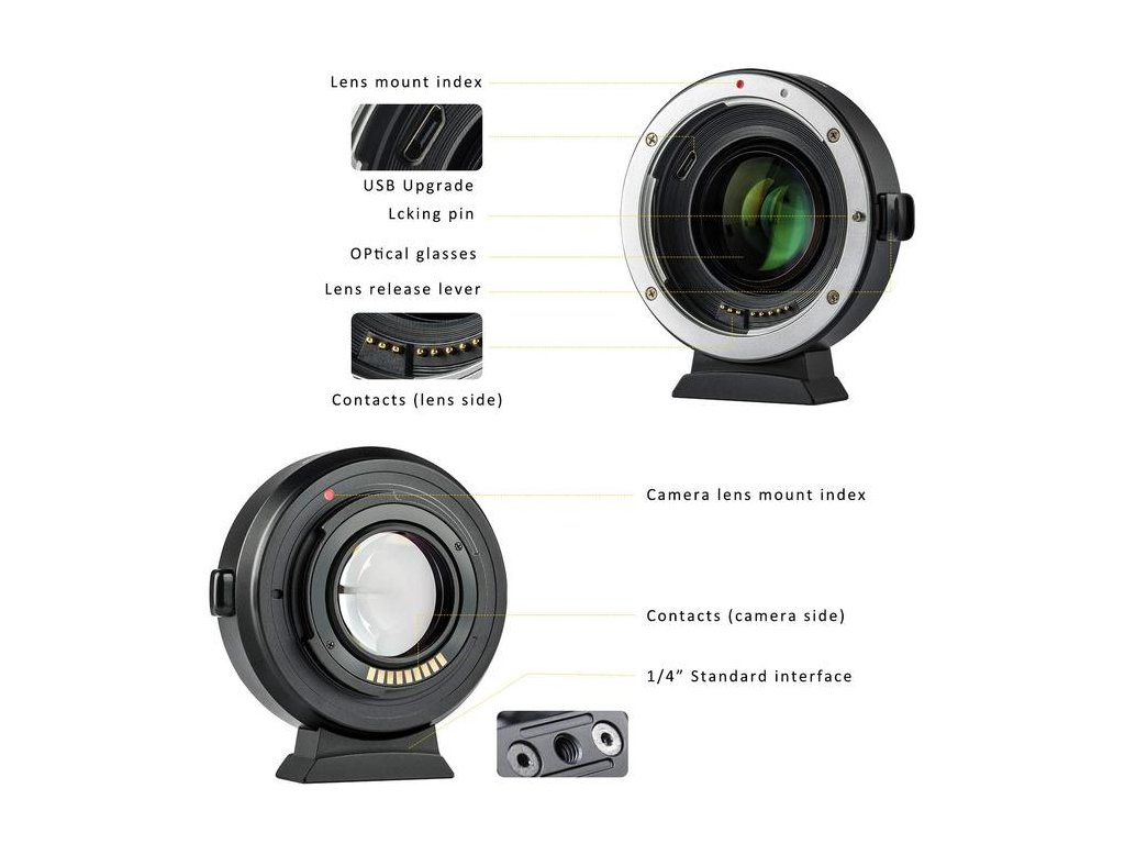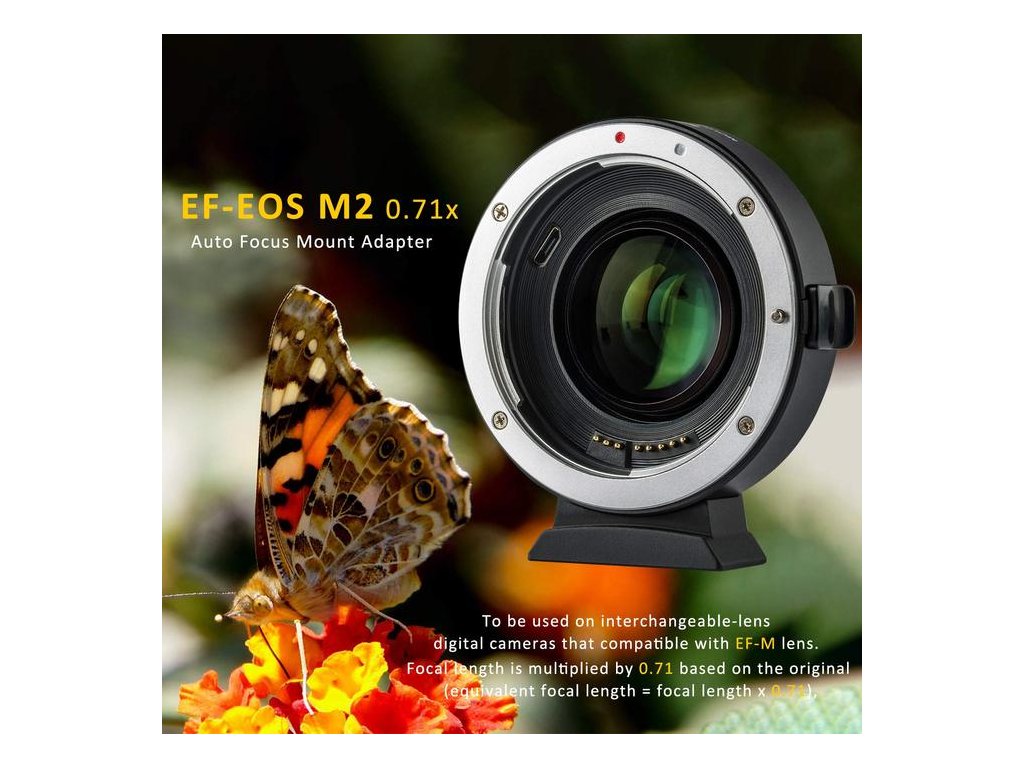 Adaptor pentru obiectiv VILTROX EF-EOS M2 Amplificator de viteză de 0,71x pentru obiectivul Canon EF la camera EOS EF-M fără oglindă. Adaptorul de montură VILTROX EF-EOS M2 este proiectat pentru a permite utilizarea obiectivelor Canon din seria EF pe camerele digitale cu obiective interschimbabile care sunt compatibile cu obiectivul EF-M.