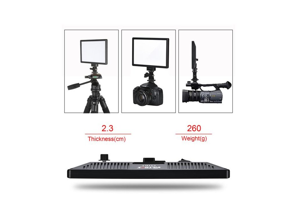 Lampa LED VILTROX L116T folosește cel mai recent design cu tip fagure LED. Are luminozitate ridicată, natură și lumini moale, temperatură stabilă a culorii. Potrivit pentru portret / copii / nuntă, etc. Afișajul LCD de înaltă definiție permite un control clar, puteți regla luminozitatea și temperatura culorii fără probleme. Hot shoe folosește o placă de bază metalică rezistentă. Poate fi montat pe DSLR, cameră video DV și trepied.